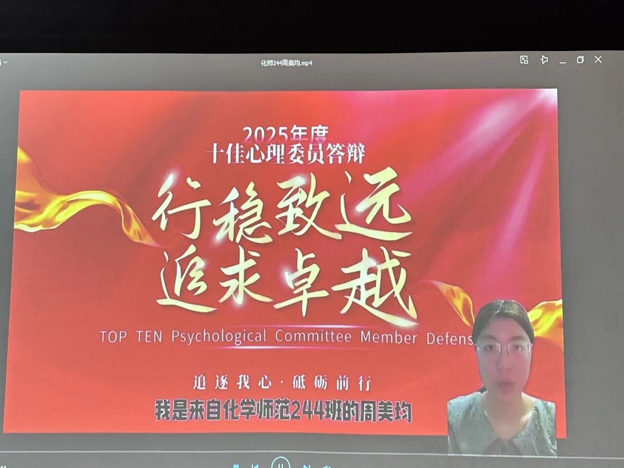 参评同学通过提交个人工作材料、现场答辩的形式,全方位展现了自身在班级心理建设、日常朋辈关怀、心理健康知识宣传、特色心理活动组织等维度的责任与风采。评审老师们从履职表现、助人精神、专业素养与工作实效等多方面进行综合考量,最终敲定学院2025年度十佳心理委员人选。