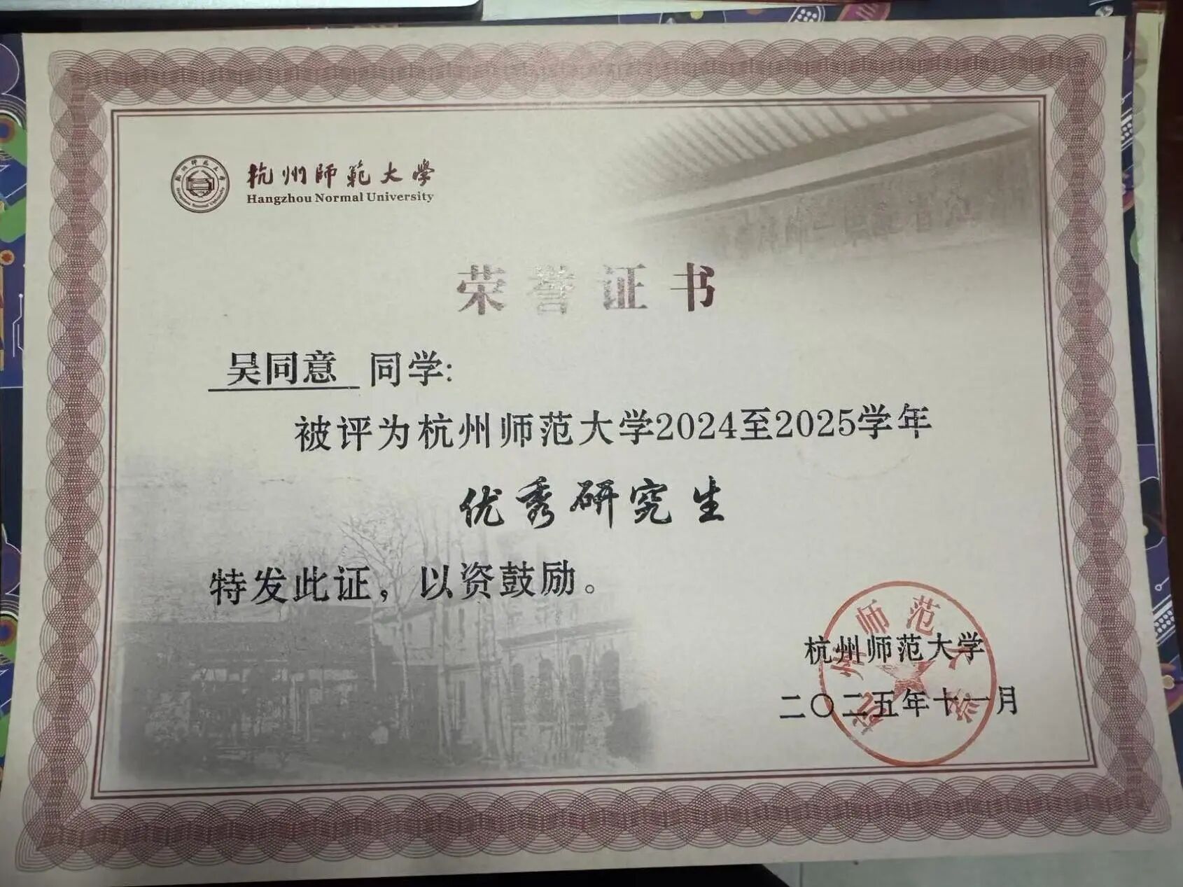 浙江省优秀毕业生