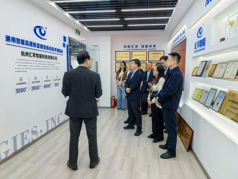 在国家级专精特新重点“小巨人”企业杭州汇萃智能科技有限公司,公司董事长兼总经理周才健陪同参观企业科创成果展厅,重点了解机器视觉、智能制造等领域核心技术研发与产业化布局。座谈中,学院围绕相关专业人才培养、实习实践、岗位供给、项目共研等内容与企业深入交流,积极推动产学研协同创新,精准对接企业用人需求,拓宽亚洲色吧 毕业生本地就业渠道。