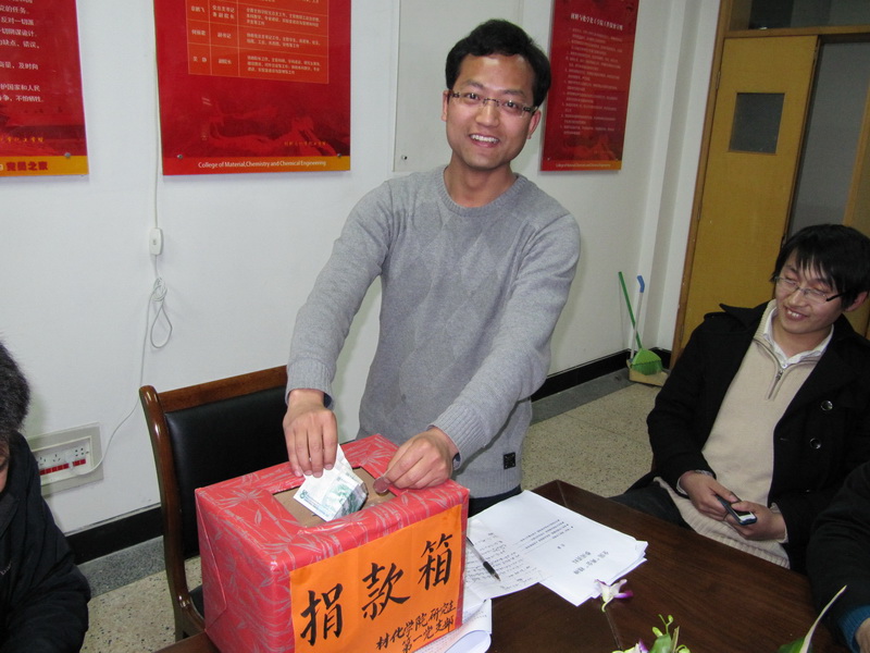 据悉,在材化学院党总支的号召下,其他党支部将陆续开展爱心捐款活动,我们相信师生的真情将给灾区人民带去一份希望、一个安慰、一份关怀,同时祝愿灾区人民能早日从恶劣的自然灾害当中走出来。
