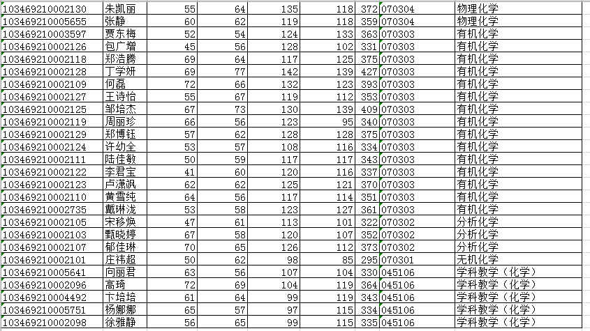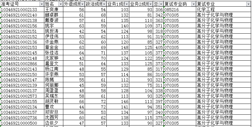 2019年材化学院参加研究生复试考生名单(第一志愿)