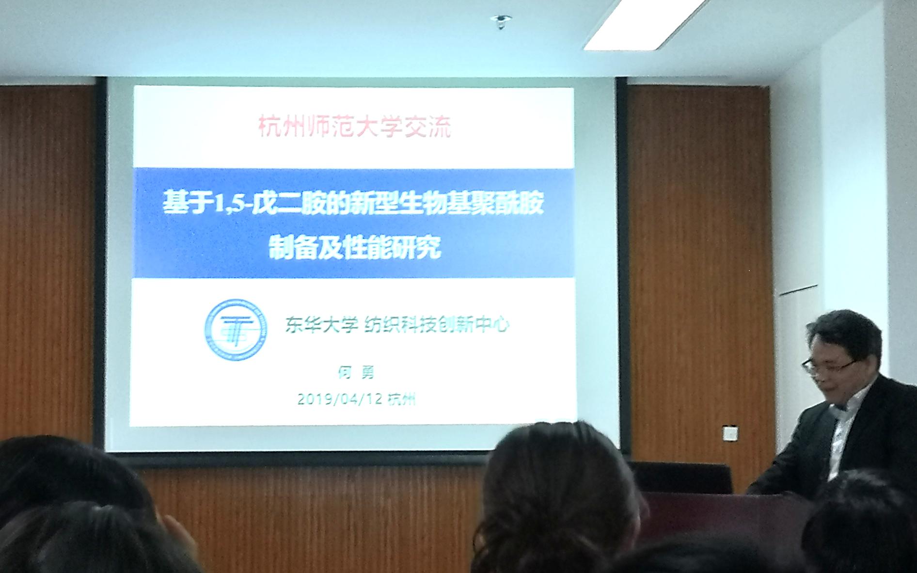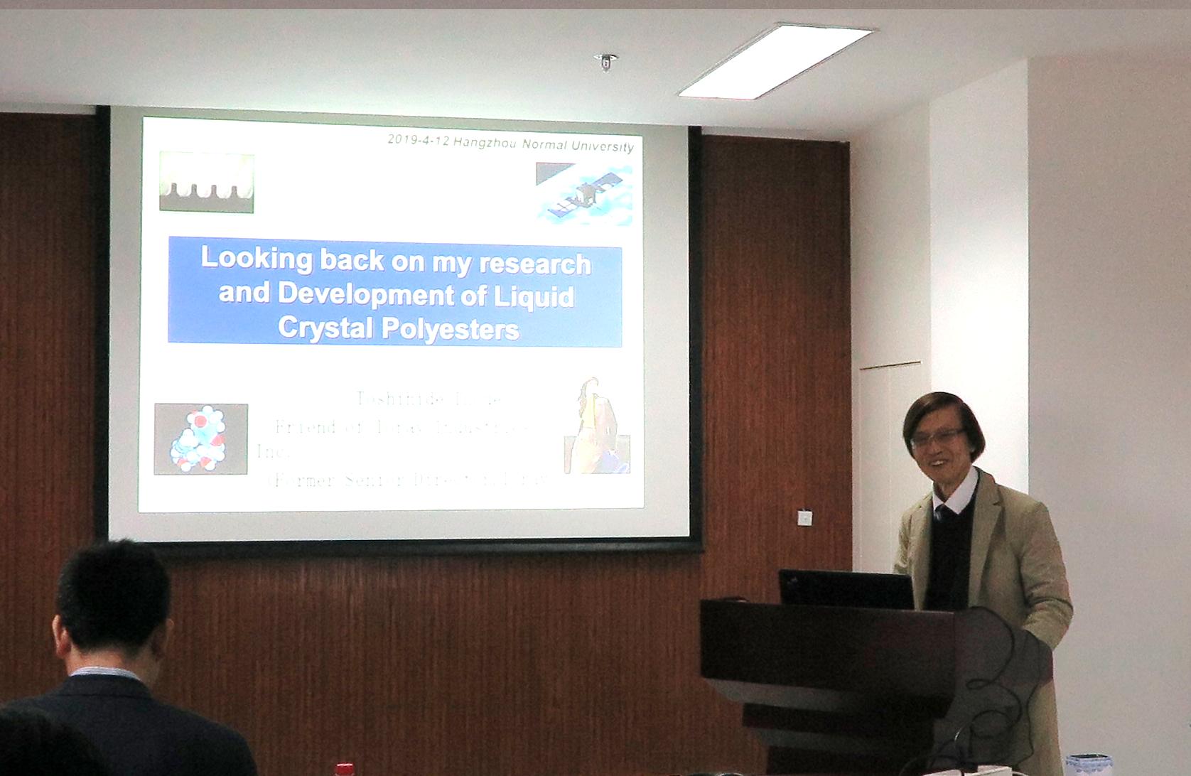 2019年4月12日上午10:00,井上俊英博士和东华大学何勇教授应亚洲色吧 李勇进教授的热情邀请,分别为材化师生做了题为“looking back on my research and development of liquid crystal polyesters ”和 “基于1,5-戊二胺的新型生物基聚酰胺及其性能研究”的学术报告。