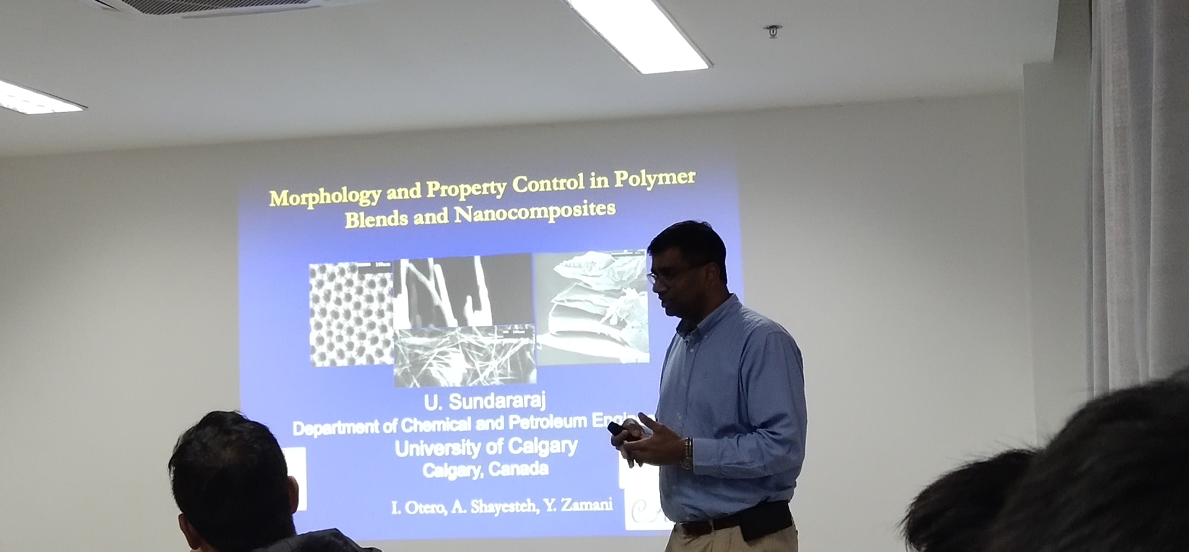 2019年11月20日14:00与2019年11月21日下午14:00,加拿大卡尔加里大学的Uttandaraman Sundararaj教授应亚洲色吧 李勇进教授的热情邀请,分别做了题为“Morphology and Property Control in Polymer Blends and Nanocomposites” 与“用于发电、电荷存储、静电放电和电磁干扰屏蔽的混杂聚合物共混纳米复合材料”的学术报告。