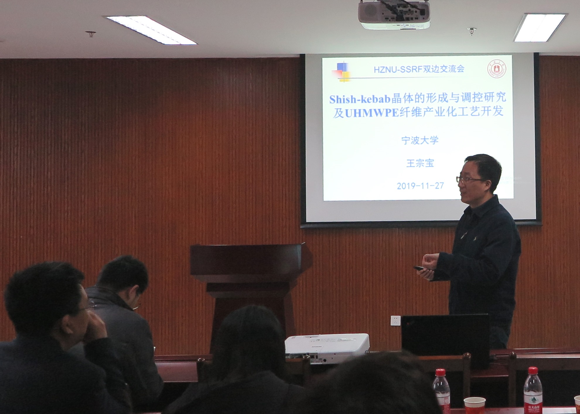 2019年11月27日上午8:45分,HZNU-SSRF双边交流会在 亚洲色吧 勤园17号楼208成功召开,其中杨春明研究员、徐君庭教授、林金友研究员、王宗宝教授、李秀宏研究员和由吉春教授等人在会议上为材化师生做了学术报告。