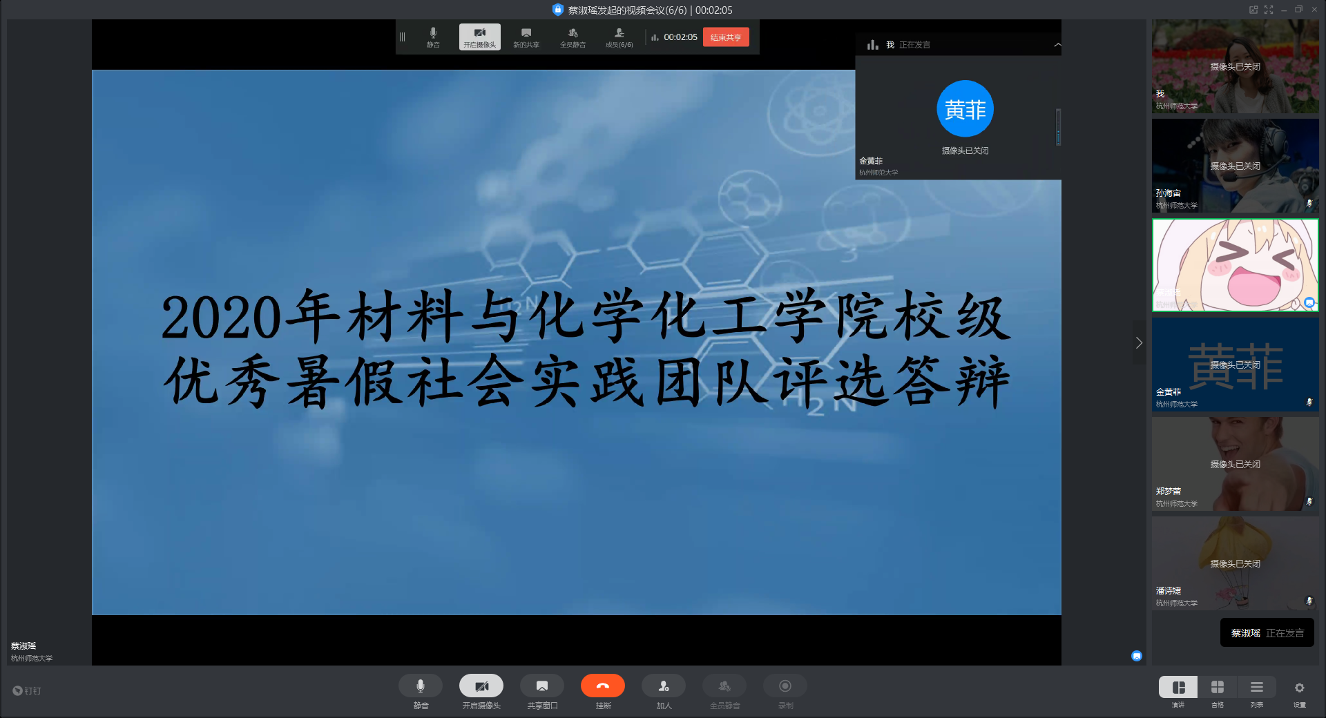 会上,学院校级重点团队候选“材化学院赴杭州、宁波‘纺织出海’寻访小分队”与“材化学院杭州市内化妆品废弃瓶即高密度聚乙烯的回收再利用调查小分队”先后进行了精彩的项目展示答辩。答辩结束后,学院相关负责人还就暑期社会实践各项注意事项进行了培训、讲解。