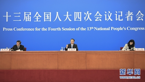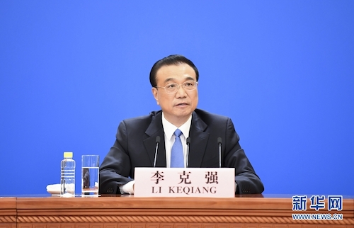 3月11日下午,十三届全国人大四次会议在北京人民大会堂举行记者会,国务院总理李克强应大会发言人张业遂的邀请出席记者会,并回答中外记者提问。新华社记者 陈晔华 摄