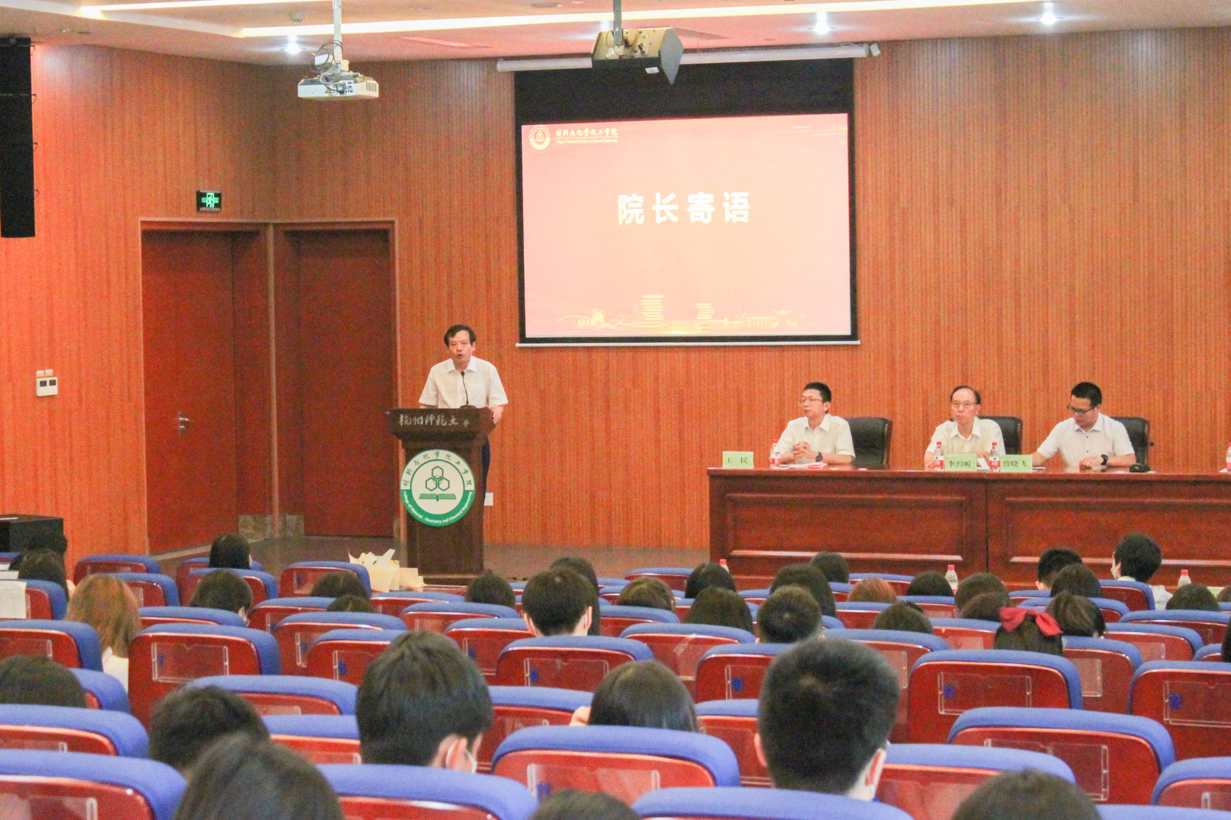 典礼最后,院长章鹏飞寄语全体毕业生。他代表学院向圆满完成学业的毕业生表示祝贺,为全体2021届学生在校阶段所展现出的蓬勃朝气与取得的优异成绩感到骄傲,并期望同学们能够心存敬畏、勇于拼搏、拥有情怀,不论走到哪里,都要时刻牢记“包容开放、学与俱进、追求卓越”的师大精神与“明礼、诚信、自主、探究”的学院传统,勇敢地去拥抱一个全新的、更加广阔的世界。