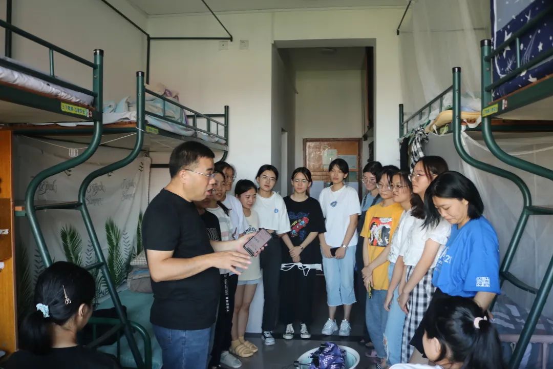 会后,学院领导和班主任、辅导员分组走进新生寝室,走访慰问新生。现场,师生亲切交流,老师们对学院新生的学习、生活情况进行了了解,对同学们的困惑与问题进行了耐心的解答,并就校园安全、疫情防控、诈骗防范等问题作出了提醒,对同学们尽快融入新阶段的学习生活、继续充实完善自己提出了期望。