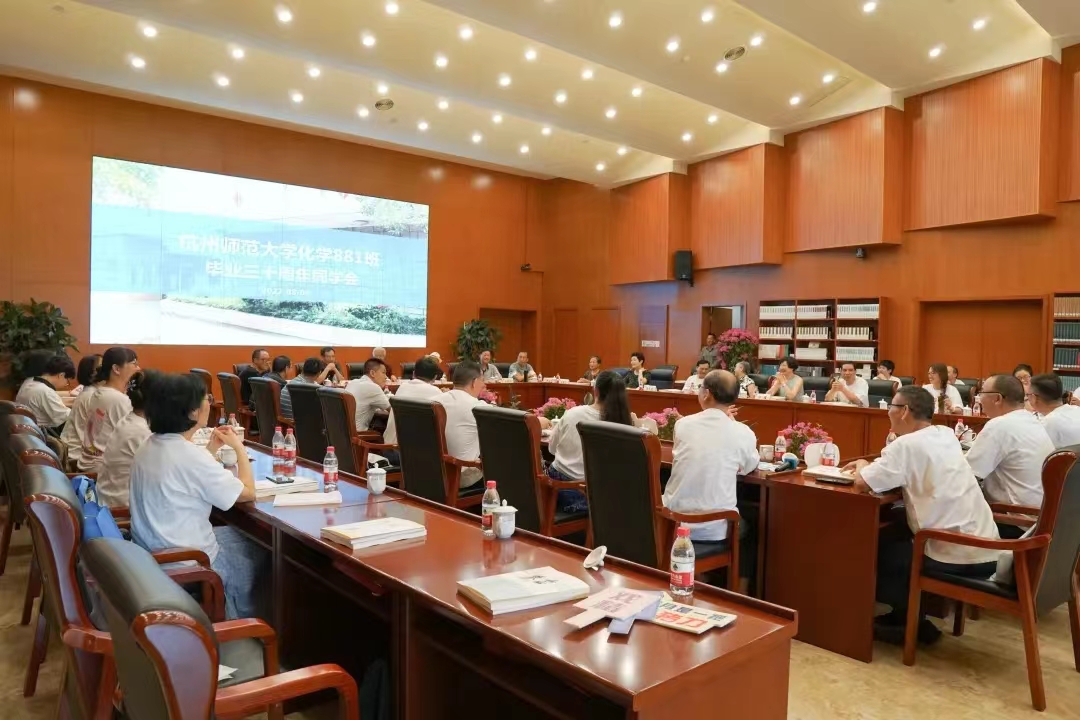 老友重逢忆旧时,殷殷求学梦飞驰。8月6日上午,亚洲色吧 化学881班30余名校友返回母校参加毕业30周年同学会。时任化学系主任周宁怀、化学系党总支书记左凯旋、化学881班班主任张晓露,当年任课及管理教师代表盛国定、颜立成、梁德兰、徐青、张义建、赵英辉、邱瑾,师兄弟代表浙江音乐学院副校长张伟波、阿里巴巴商学院党委书记何军,学院院长章鹏飞、党委书记江齐里、党委副书记兼纪委书记管庆江与校友、校友家属欢聚一堂,共庆毕业30周年,重温往年美好时光。同学会由化学881班校友、杭州国际城市学研究中心党组书记、主任江山舞主持。