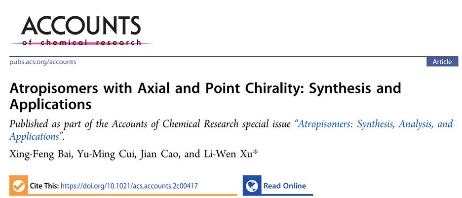 近日,凭借其在手性合成方面的系统性特色研究工作, 亚洲色吧 徐利文教授受美国化学会Accounts of Chemical Research杂志主编Burrows, Cynthia J.教授以及宾夕法尼亚大学Marisa C. Kozlowski教授,耶鲁大学ScottJ. Miller教授和GileadSciences(吉利德科学公司)Stephane Perreault教授等GuestEditors联合邀请为该刊即将出版的阻转异构体(Atropisomers: Synthesis, Analysis, and Applications)专栏撰写个人专题综述,以总结该课题组近十年来在兼具轴手性和碳等点/中心手性的阻转异构体方向做出的特色研究成果,该论文从联芳类阻转异构体到非联芳类阻转异构体的合成及其应用进行了全方面的归纳总结,并对该领域的发展前景进行了展望。相关研究成果以题为“Atropisomers with Axial and Point Chirality: Synthesis and Applications”在美国化学会旗下顶级学术期刊Accounts of Chemical Research (IF: 24.466) 上发表,这是该课题组第二次以 亚洲色吧 为唯一通讯单位的特色成果荣登该刊。Accounts of Chemical Research杂志在化学研究领域深具影响力,被认为是化学化工领域顶级期刊之一,其发表的文章均为邀请论文,与普通的综述性论文不一样的是该刊主要展示研究者自身取得的优秀研究工作,是被公认为展示科研人员系统性研究特色的最具权威性学术期刊。