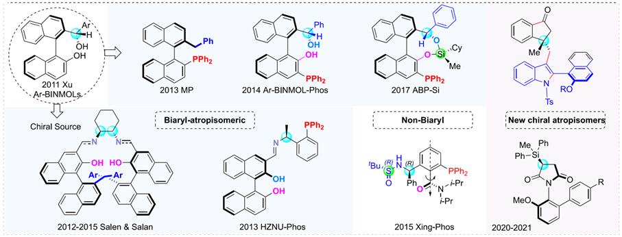 徐利文教授团队发展的具有代表性的阻转异构分子(兼具轴手性和中心手性)