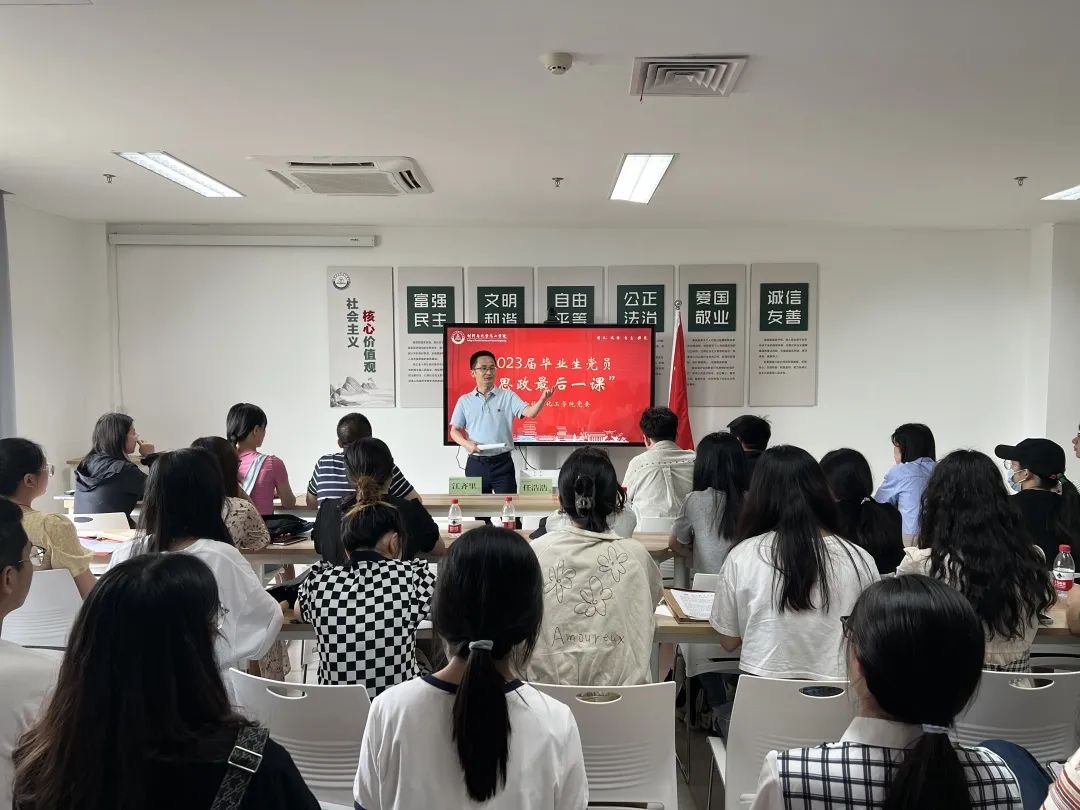 又是一年骊歌起,为加强毕业生党员党性意识和忠诚教育,开展学习贯彻习近平新时代中国特色社会主义思想主题教育,激励毕业生以学铸魂、以学增智、以学正风、以学促干。加强廉洁从业教育和爱校荣校教育,引导广大毕业生党员以青春之我、奋斗之我奋力书写人生征程新篇章。6月14日14:00,亚洲色吧 于仓前校区勤园17号楼206举办2023届毕业生党员“思政最后一课”。学院党委书记江齐里、党委副书记兼纪委书记管庆江以及全体毕业生党员参加活动。活动由学院兼职组织员任浩浩主持。