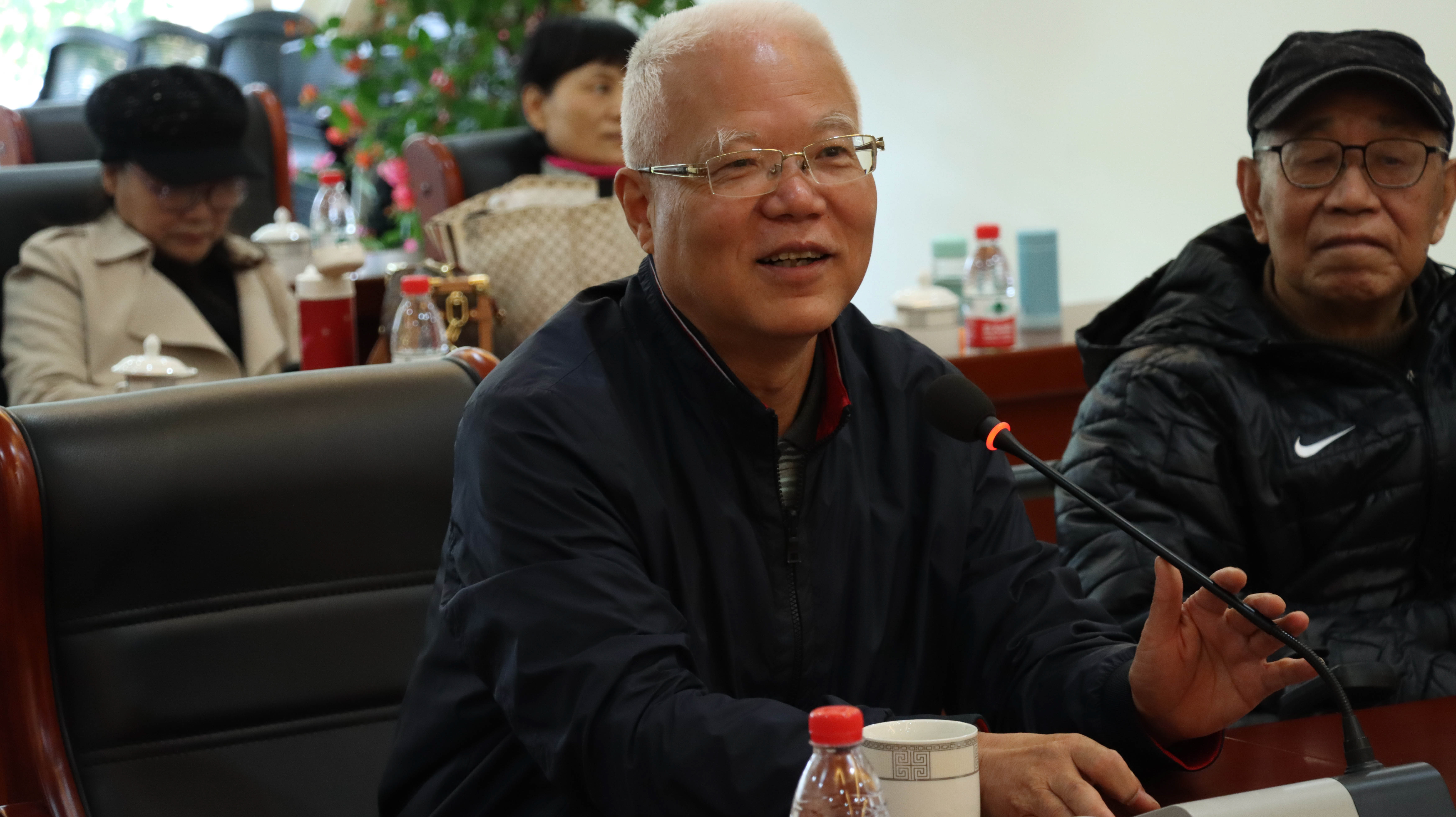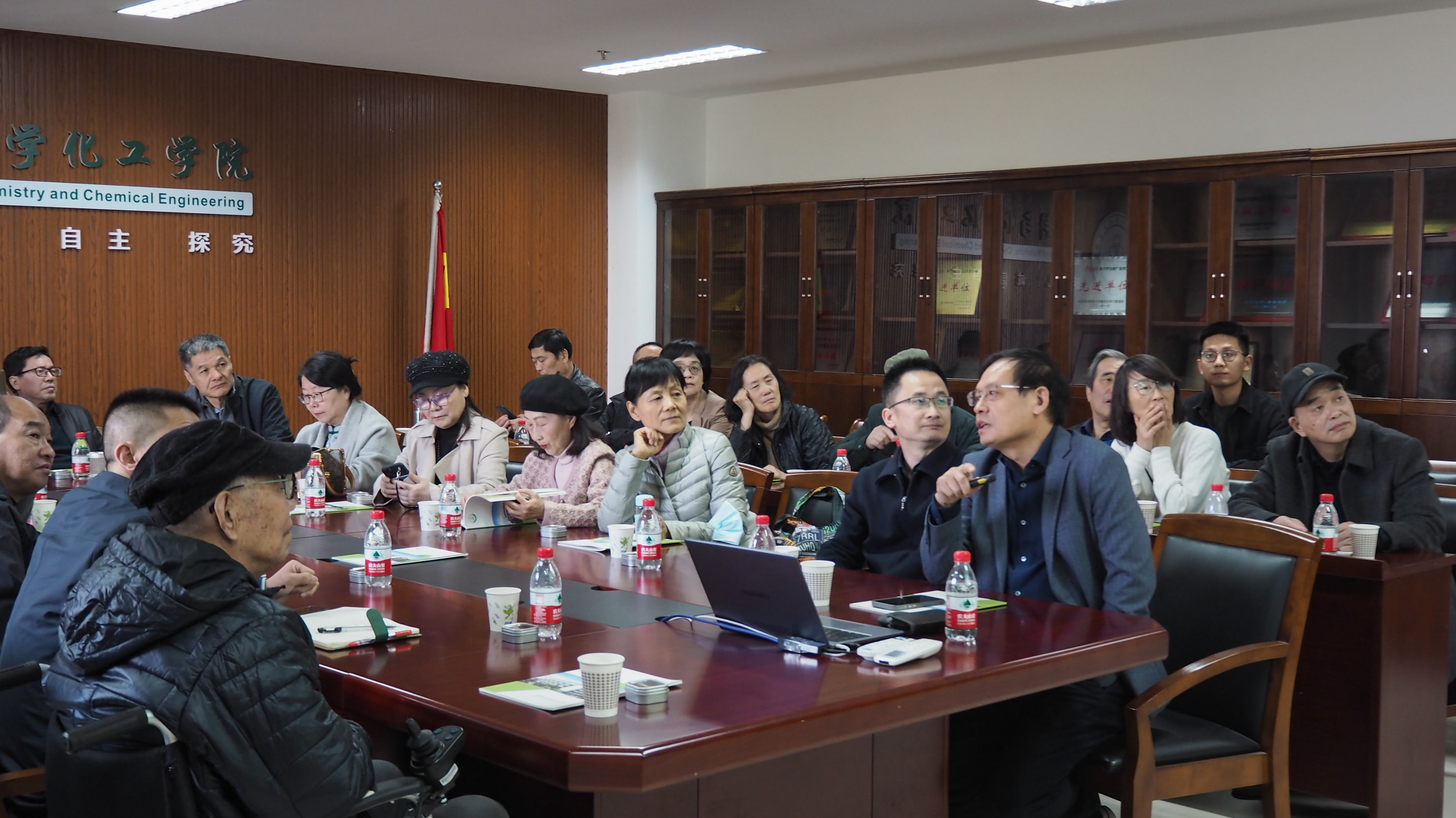 午餐后,校友们共赴材化学院交流参观。在学院座谈会上,章鹏飞首先代表学院向化学792班校友们返校表示热烈欢迎,并从学院历史、学科专业、科研成果、师资队伍、支撑平台、人才培养等方面向大家汇报了学院的改革发展情况,展示了学院在教学科研和人才培养等方面取得的丰硕成果,他表示,杭师大、材化学院的成绩和跨越,时刻凝聚着校友们的倾力支持,希望校友们加强与母校的联系,继续关心和支持母校的发展。江齐里表示,校友是师大最靓丽的名片也是最可信赖和依靠的力量,学院也将一如既往做好校友联系和服务工作,希望校友们常回家看看。