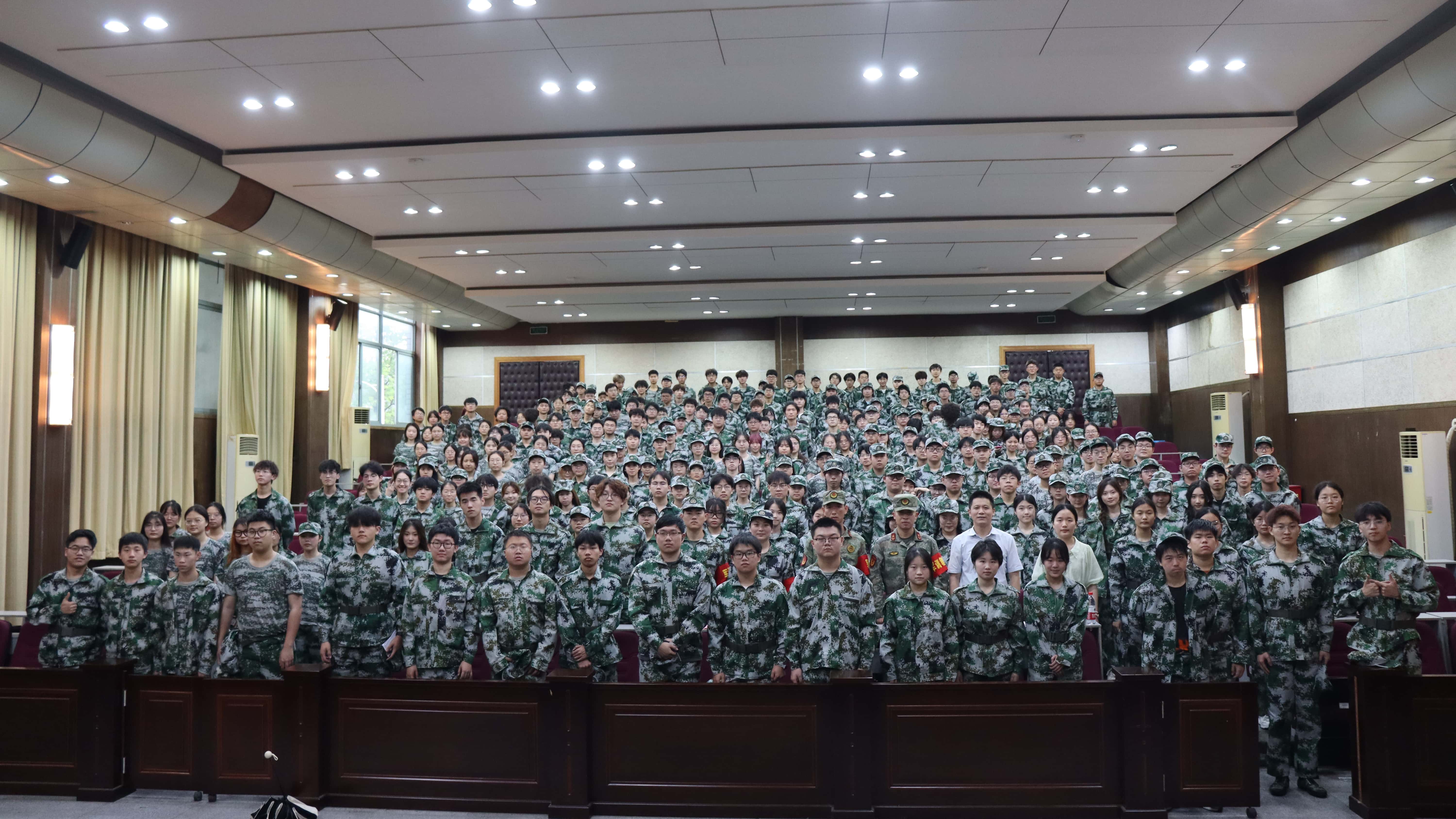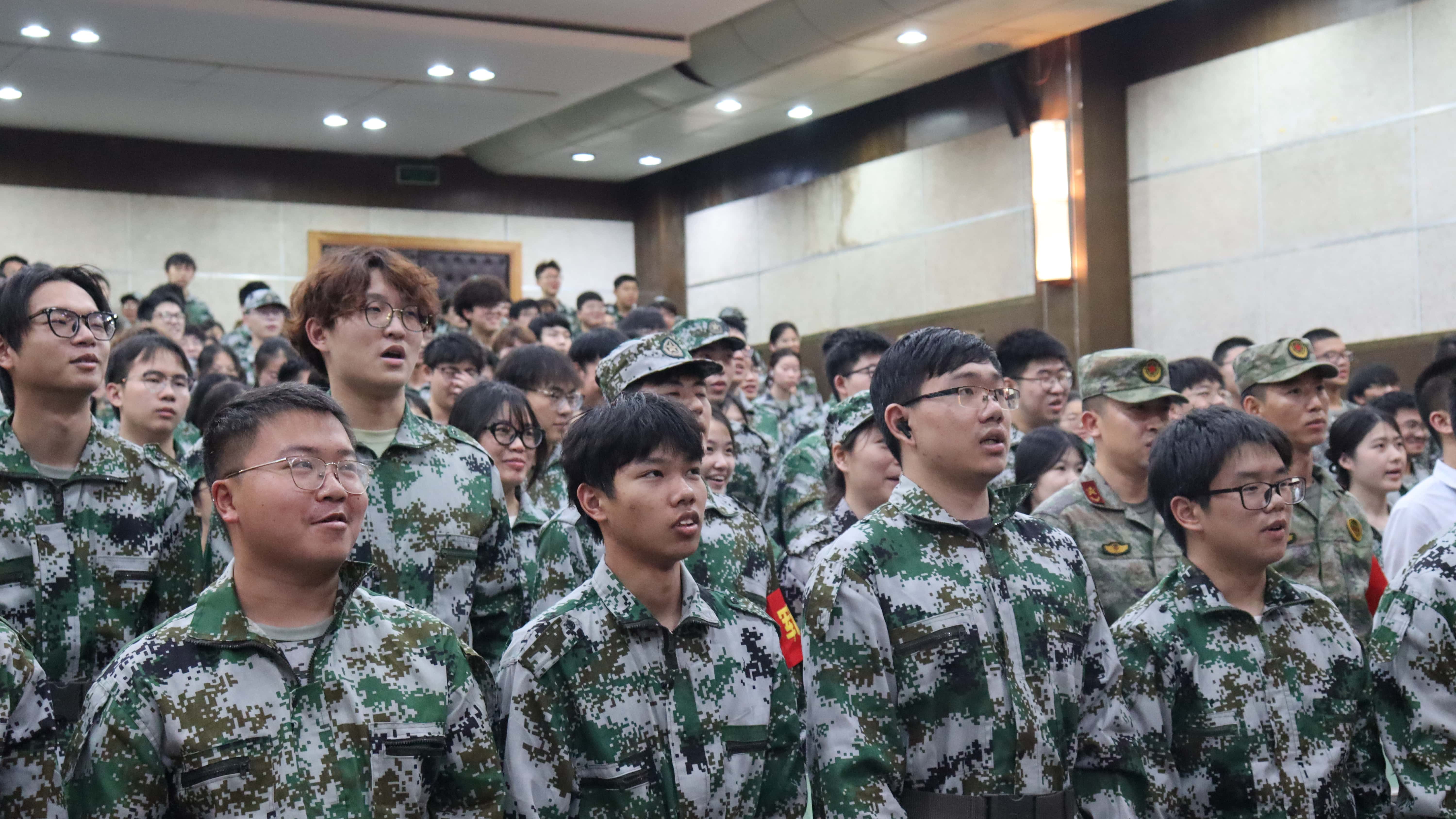 会议伊始,一列整齐有序的教官队伍踏入教室,现场响起了雷鸣般的掌声,热烈欢迎他们的入场。慷慨激昂的国歌旋即响起,全体人员奏唱国歌,昭示着军训动员大会的顺利启动。