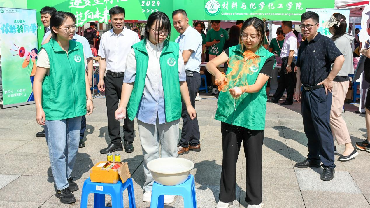 更令人惊喜的是,贵之烯化学研究社还带来了化学实验展示表演,既科学又充满趣味,展示出化学的魅力。