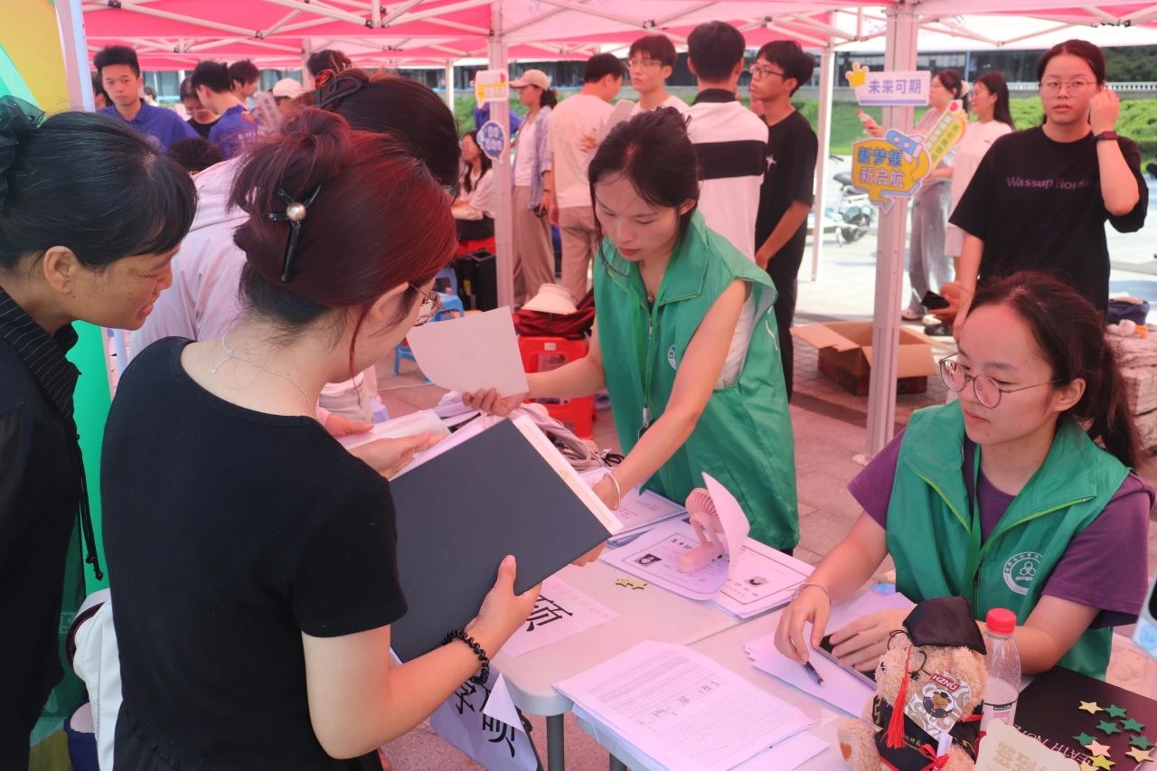热情洋溢的迎新志愿者们各自分工,为新生们提供细致的方向与流程指引、行李寄存与搬运、采访拍照等服务。他们热情引导、耐心服务、密切配合、协同分工,展现着新时代青年学生的风采。“咔擦”一声,定格了爱与陪伴的难忘瞬间,更是在新生们探索校园的同时留下独特的“材化初印象”。
