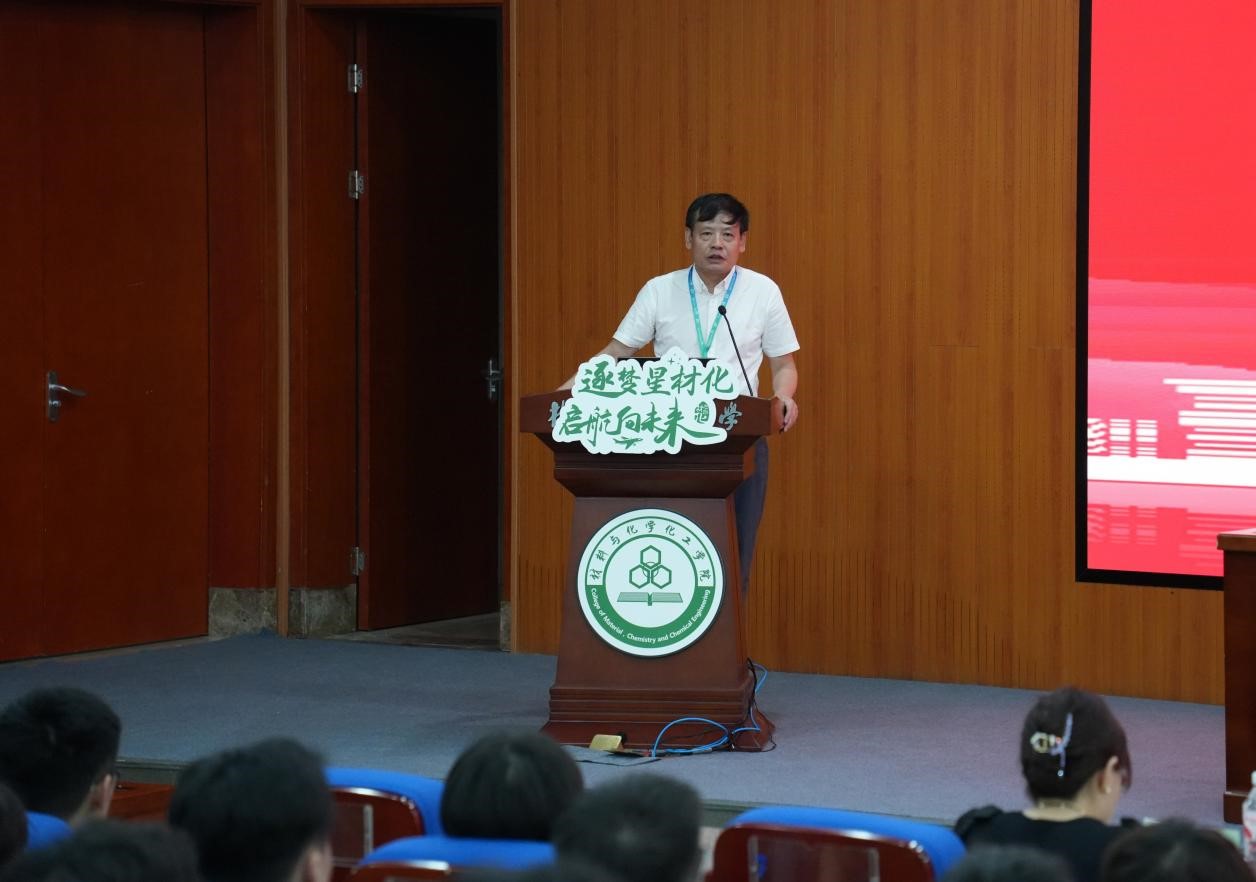 章鹏飞发表了题为“心怀‘国之大者’,勇于探索创新”的讲话,代表学院向各位新同学的到来表示热烈的欢迎,向鼎力支持和帮助同学读研的家人表示最诚挚的谢意。章院长通过对学院的悠久历史、师资力量、科研水平以及科研成果的简明介绍,希望同学们能够在材化学院浓厚的学术氛围下努力拼搏,探索创新。他提出了三点希望和要求:第一,心怀“国之大者”,勇担时代重任。“士不可以不弘毅,任重而道远。”同学们要心怀“国之大者”,让青春在以中国式现代化全面推进强国建设、民族复兴伟业中绽放光彩。第二,思考探索研途,创新引领未来。“学而不思则罔,思而不学则殆。”创新始终是一个国家、一个民族发展的重要力量,是百年变局中的“关键变量”,也是研究生学习的最重要驱动力。第三、坚持守正创新,修身立德成长。既要学知识、学本事,又要学做人、学处世,坚守学术底线,养成自律习惯,学会时间管理和团队合作,共同攻克科研难题,勇攀科技高峰。