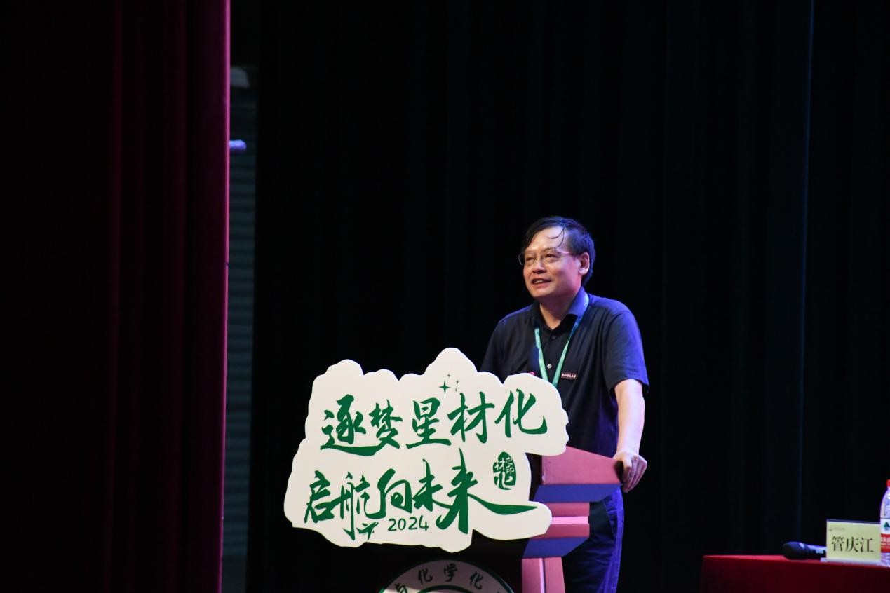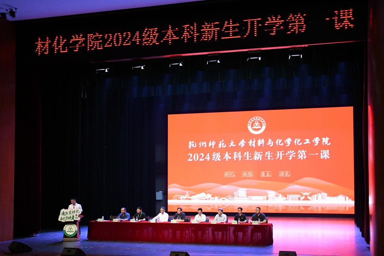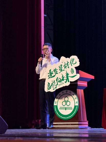 学院院长章鹏飞,党委书记江齐里,校友代表、1984届化学教育专业校友金富强,副院长李志芳、黄又举,党委副书记管庆江,院长助理、化学系主任邵欣欣,院长助理、化工系主任汤龙程,院长助理、高分子系主任于双江, 2024级新生班主任团队,全体辅导员与每一位满怀憧憬和期待的新生们共赴这场关于梦想启航、青春绽放的盛宴。开学第一课由管庆江主持。