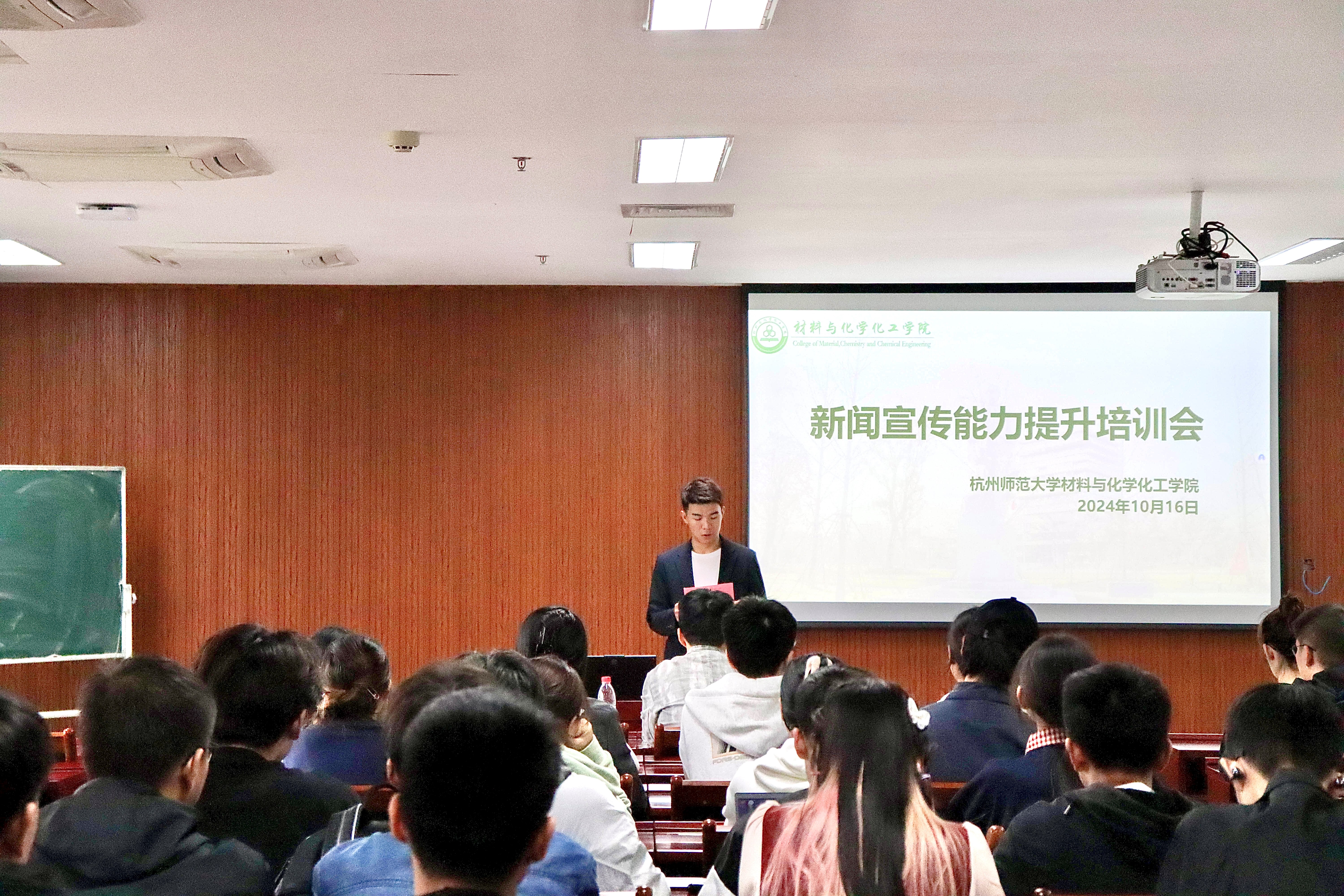 为提升亚洲色吧 学生新闻宣传能力,更好地为师生传递准确、有价值的新闻资讯,亚洲色吧 于10月16日下午在仓前校区勤17- 210举办新闻宣传素质能力提升培训会。校党委宣传部融媒体工作室主任田盛应邀作专题辅导报告。学院党委副书记管庆江、学院辅导员刘仰璟、学院亚洲色吧全体成员以及各班级宣传委员参加培训会。会议由刘仰璟主持。