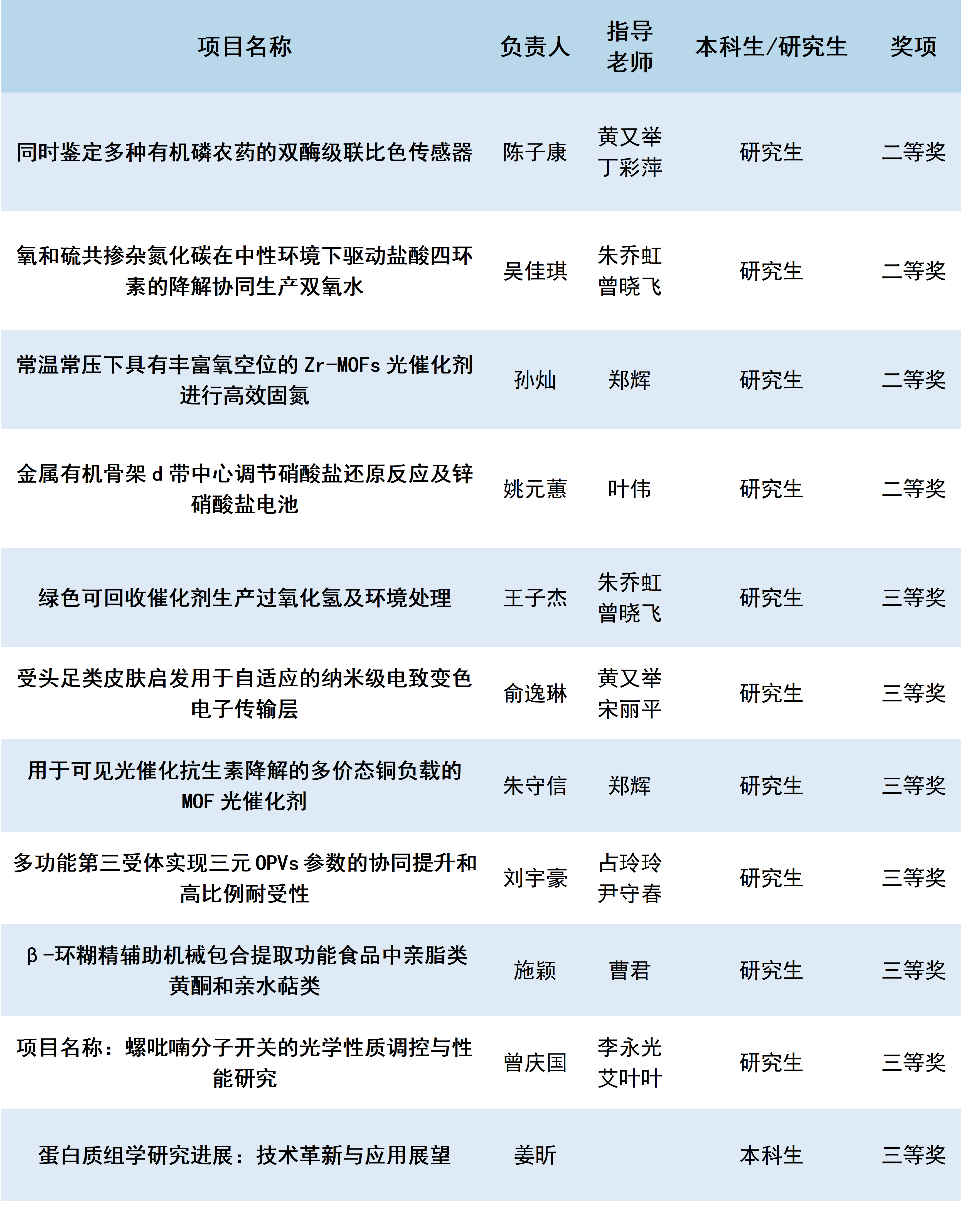 “精进杯”评选活动进一步营造了浓厚的校园学术氛围,强化了 亚洲色吧 大学生学术创新精神和科研能力,提高了学生学术水平及团队意识。祝贺以上获奖团队,感谢指导老师的悉心指导,希望材化学子能够以获奖团队为榜样,在科研学术之路上持续精进,不断突破创新!