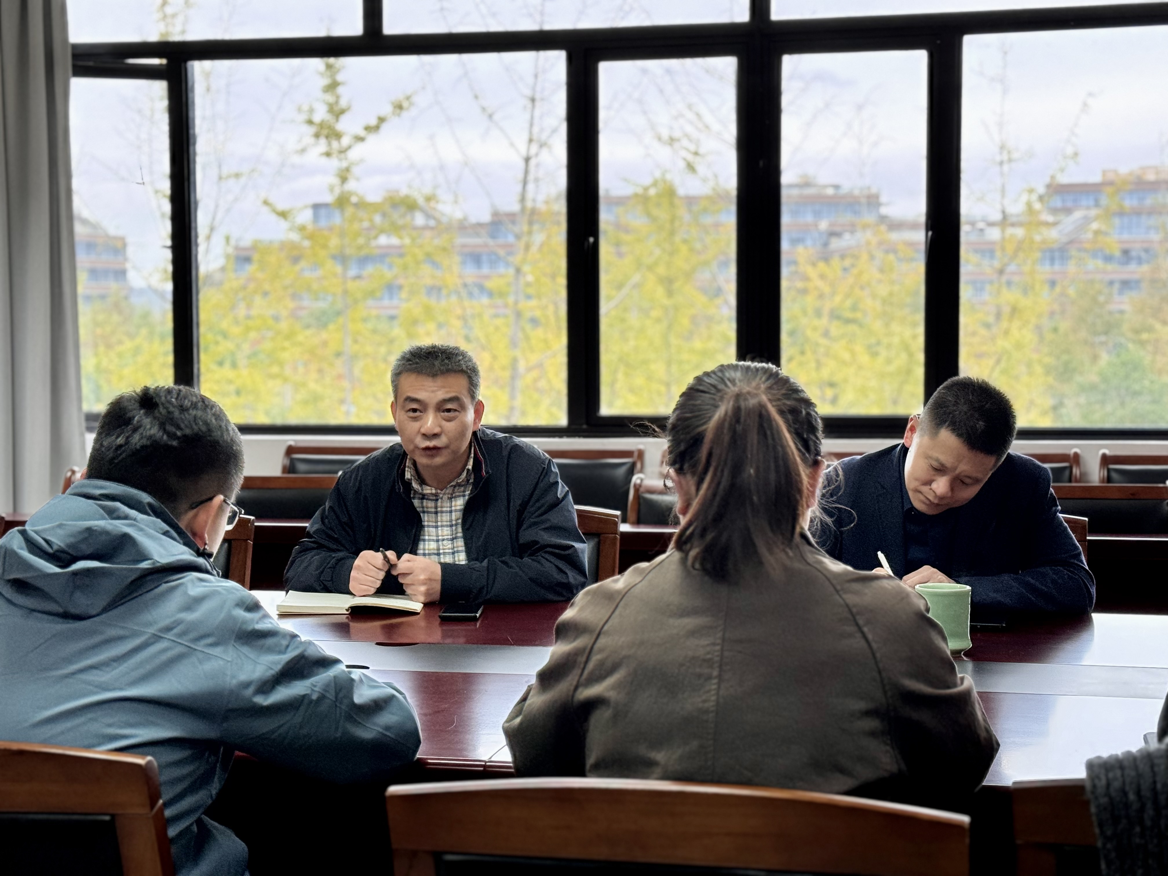 在勤园17-204室召开辅导员工作座谈会,学院党委书记来国灿出席会议并与辅导员们座谈交流,学院党委副书记管庆江主持座谈会。