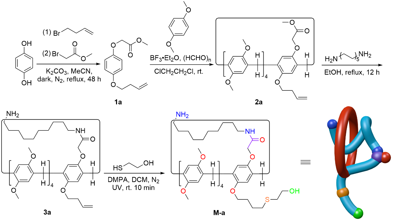 图1 带有羟基与氨基的准[1]轮烷的合成示意图