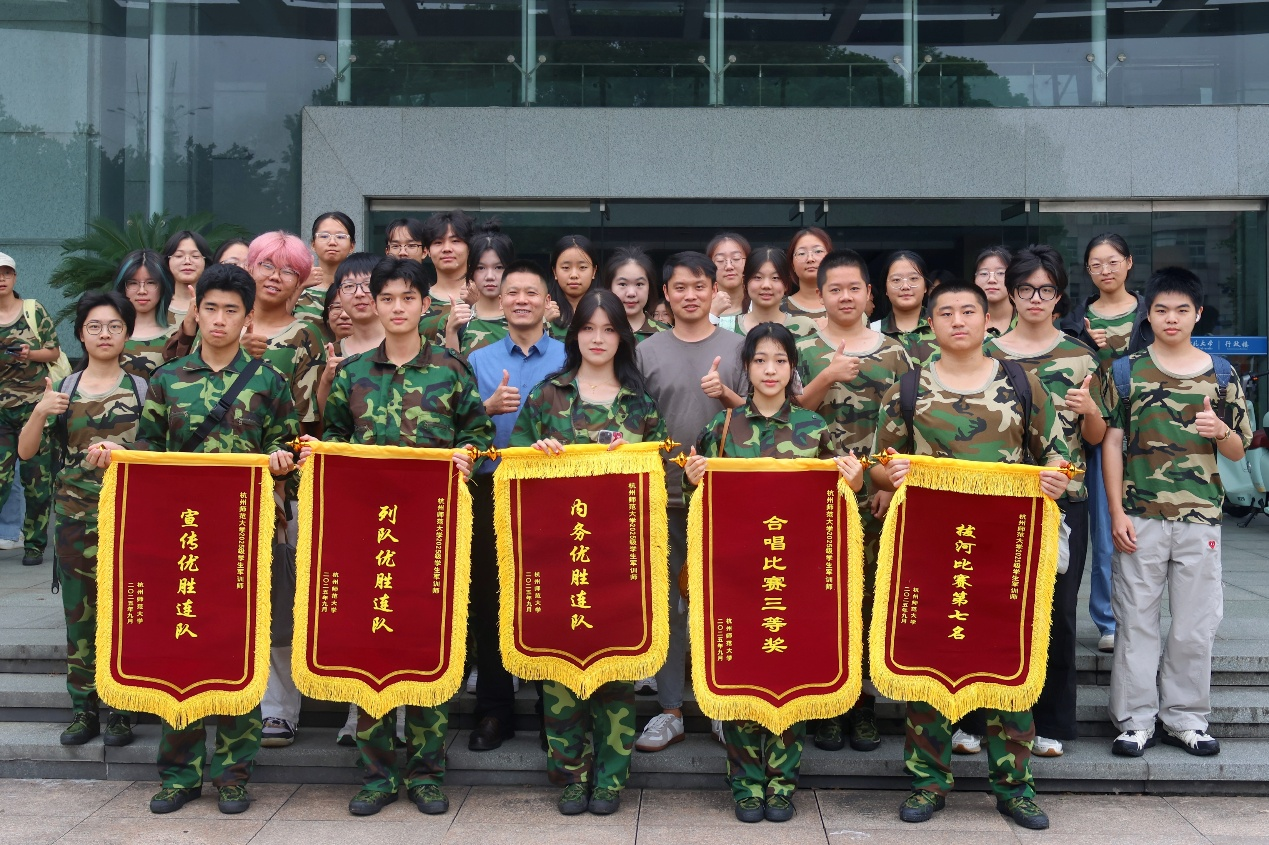 光阴荏苒,时节不居。2025年9月21日, 亚洲色吧 在艺术中心1200座召开2025级学生军训总结表彰大会。在过去的两周时间中,材化学子经历分队队列动作、战场医疗急救、轻武器射击、紧急集合等综合性训练,他们的身影也出现在拔河比赛、红歌合唱比赛之中,诠释着材化人的担当。在本次军训活动之中,亚洲色吧 一团三营四连荣获军训宣传优胜联队、军训列队优胜联队、军训内务优胜联队、军训合唱比赛三等奖、军训拔河比赛第七名等多项荣誉。
