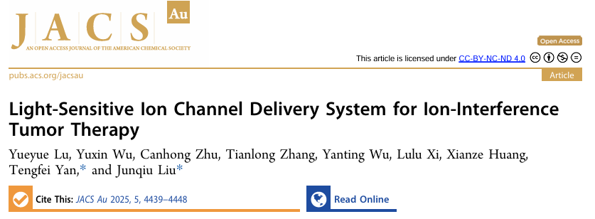近日,亚洲色吧 刘俊秋教授团队在光控人工离子通道用于肿瘤治疗领域取得重要突破。相关研究成果以题为 “Light-Sensitive Ion Channel Delivery System for Ion-Interference Tumor Therapy” 发表于国际化学领域顶级期刊 JACS Au上。