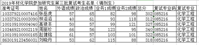2019年材化学院参加研究生第三批复试考生名单(调剂生)