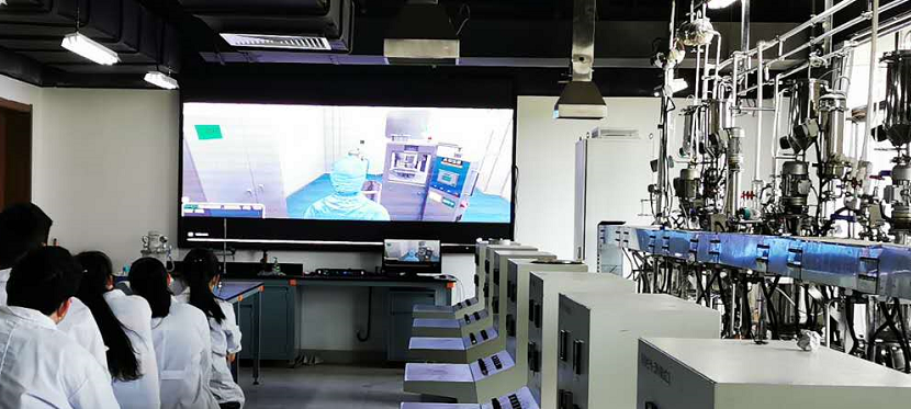 通过半实物改造,在国内较早建设的阿司匹林全流程虚拟仿真生产实训项目。