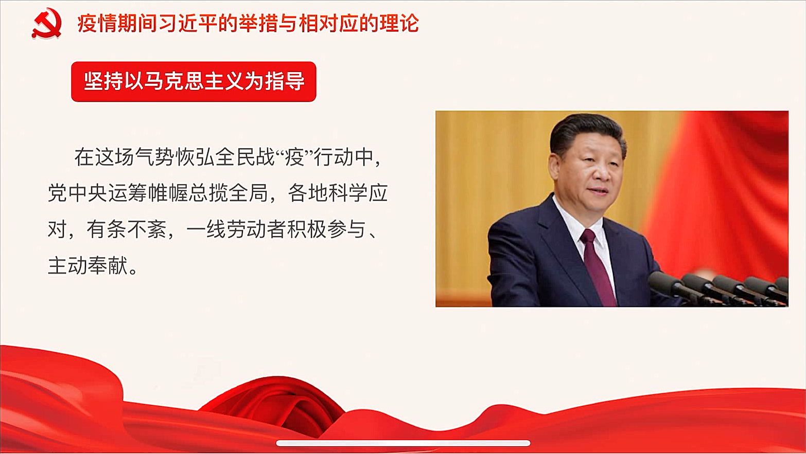 首先,让我们先从理论方面,了解一下中国速度背后的中国共产党的领导。这其中,我主要想从以下四点进行介绍。第一,是坚持以马克思主义为指导。第二、是彰显世界眼光和人文关怀。第三,是坚持以人民为中心。第四,是推动构建人类命运共同体。其次,美国不仅政府未能实施正确的措施,并且总统特朗普的行为也匪夷所思。最后,新冠疫情下,若将中美对比,高下立现。第一,中国的社会主义性质决定了党的绝对领导地位。第二,中国在抗疫投入了巨大人力和物力。第三,中国从疫情一开始就采取公开、透明、负责的态度。