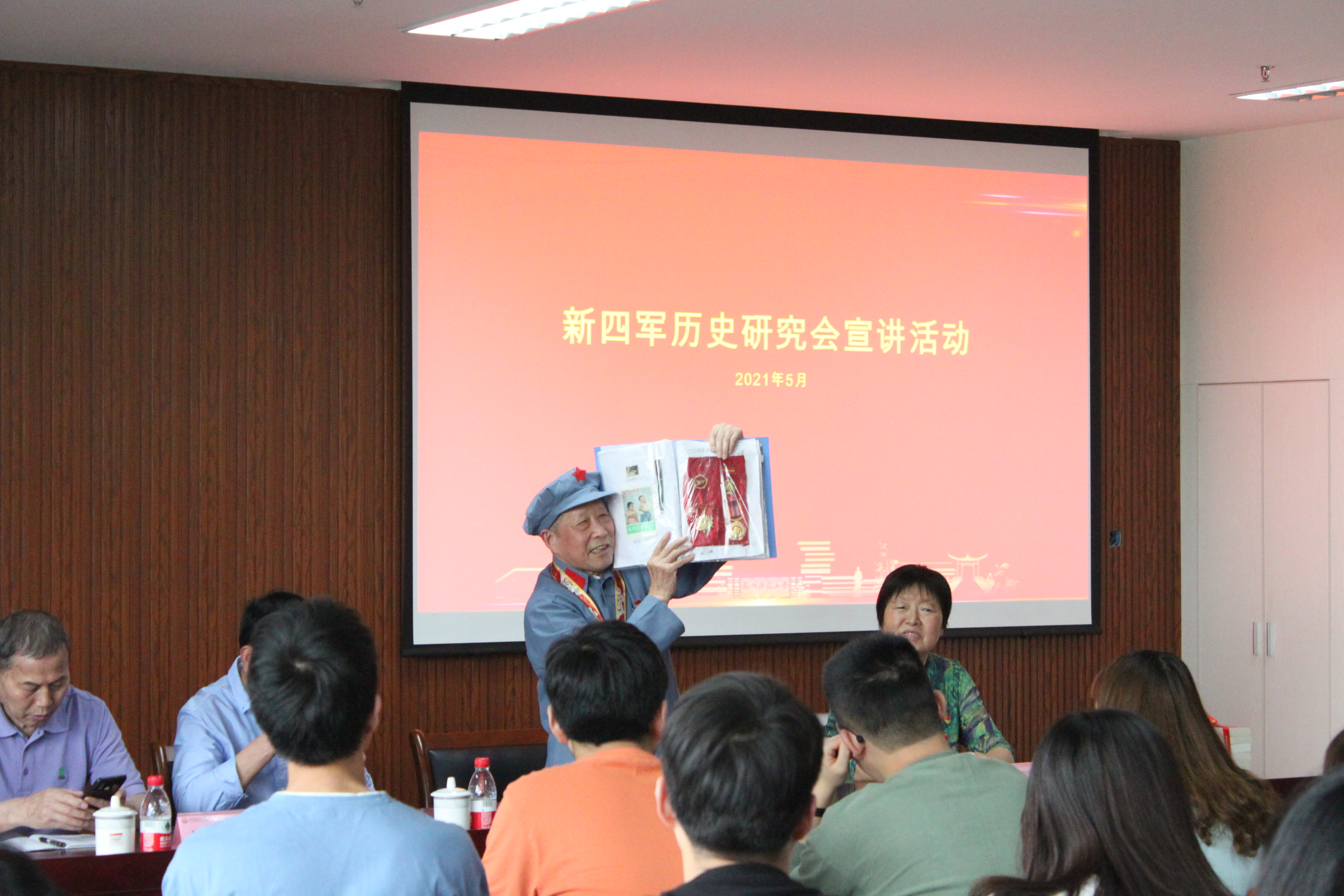 为进一步贯彻落实习近平总书记关于在全党开展党史学习教育的重要指示精神,5月20日下午,亚洲色吧 于勤园17号楼208教室成功举办杭州新四军历史研究会宣讲活动。新四军历史研会会员、曾经亲身经历过抗美援朝战争的89岁老战士李元春带来一堂生动的党课,学院100余名师生到场参加活动。