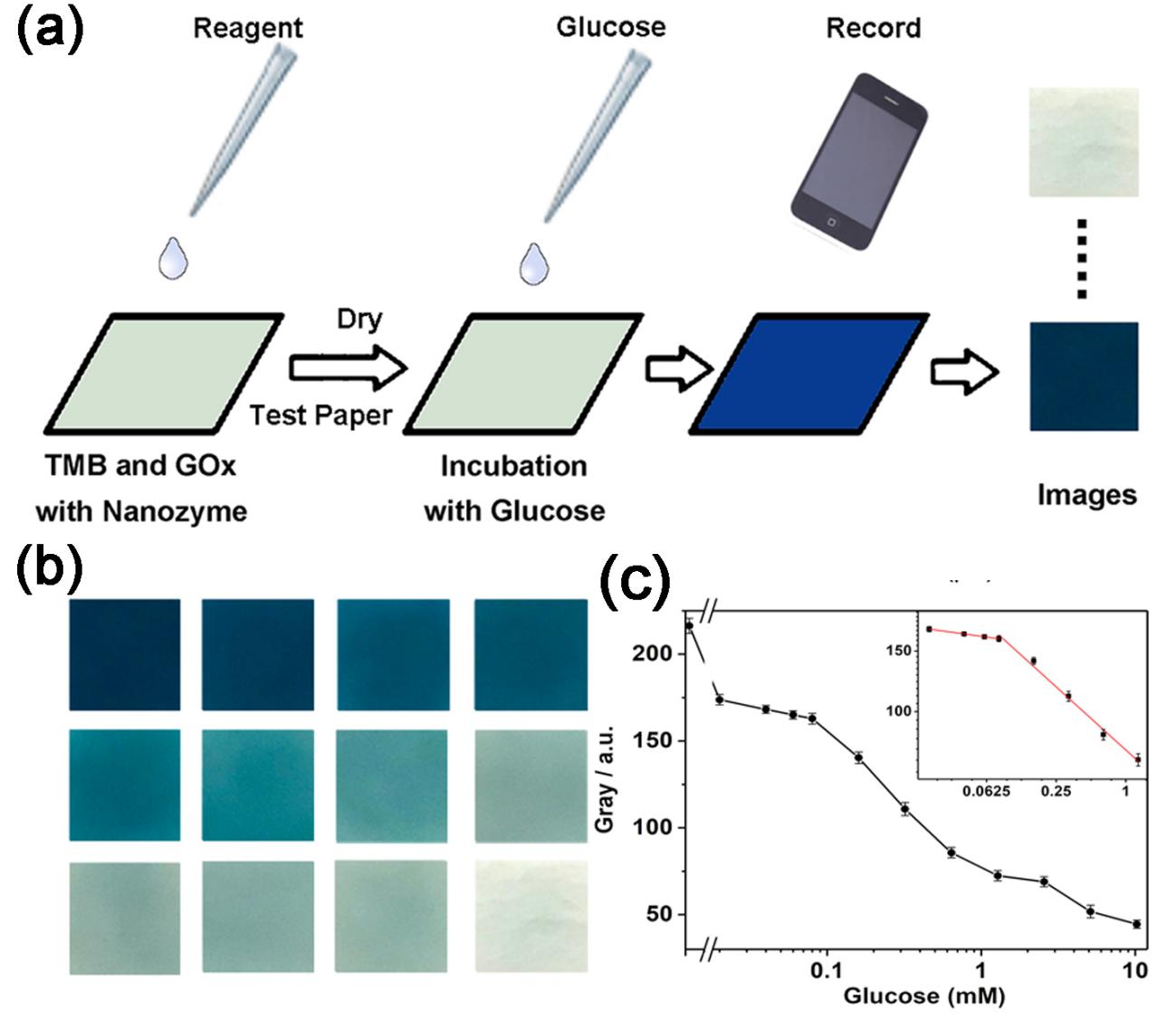 图4 纳米酶试纸检测系统检测葡萄糖。
