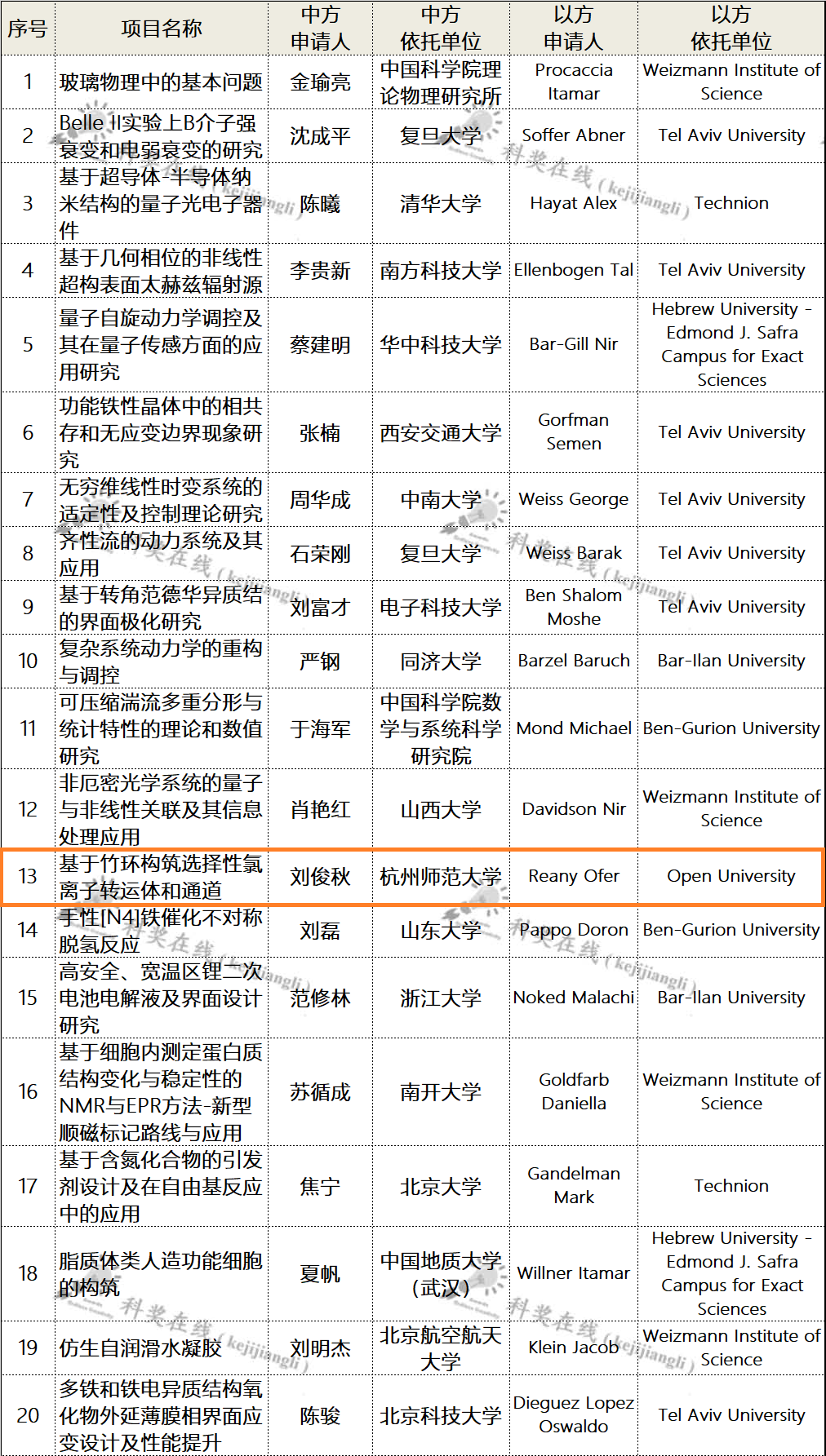 近日,国家自然科学基金委官方网站公布了2021年度国家自然科学基金委员会(NSFC)与以色列科学基金会(ISF)合作研究项目的立项名单,由亚洲色吧 刘俊秋教授与以色列开放大学Ofer Reany教授联合申报的“基于竹环构筑选择性氯离子转运体和通道”项目获得立项资助(项目编号2211101029)。