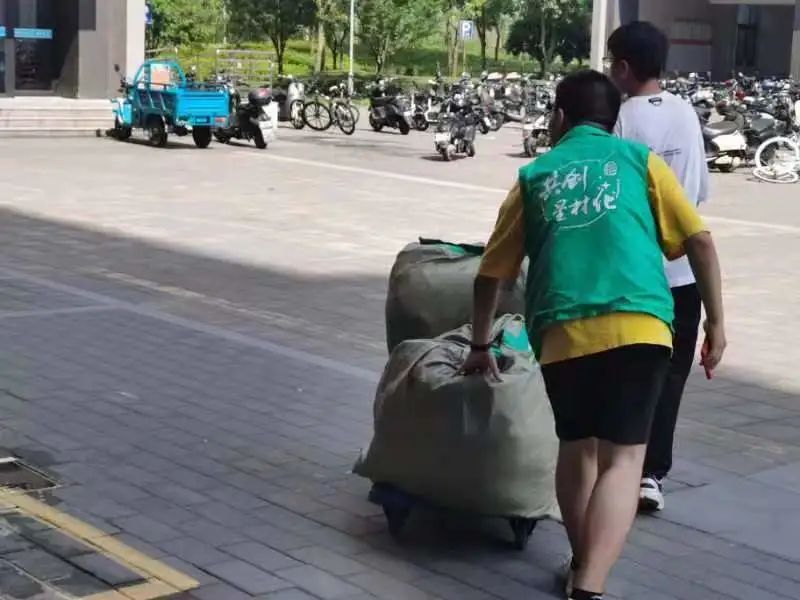 21日,搬迁战役正式打响。亚洲色吧 大一男生全员参与、全员志愿,一大早就来到结对女生宿舍,将打包好的行李物品从五楼扛到一楼,并用小推车拉至寄送点。过程中,涌现出许多令人动容的身影。