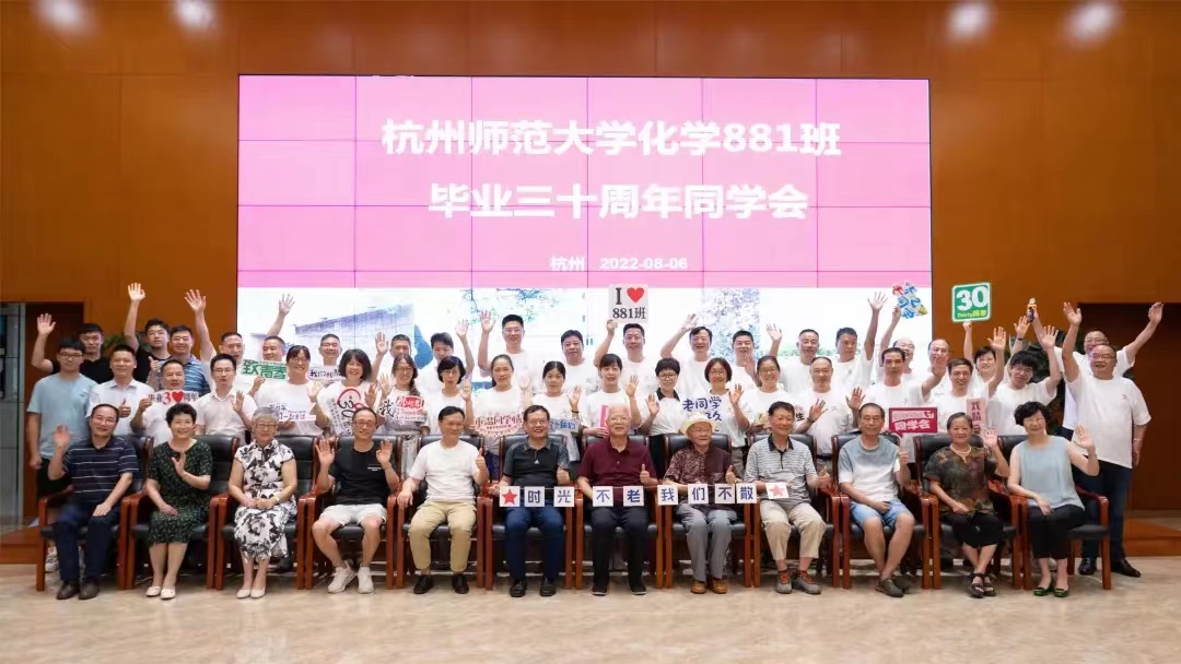 老友重逢忆旧时,殷殷求学梦飞驰。8月6日上午,亚洲色吧 化学881班30余名校友返回母校参加毕业30周年同学会。时任化学系主任周宁怀、化学系党总支书记左凯旋、化学881班班主任张晓露,当年任课及管理教师代表盛国定、颜立成、梁德兰、徐青、张义建、赵英辉、邱瑾,师兄弟代表浙江音乐学院副校长张伟波、阿里巴巴商学院党委书记何军,学院院长章鹏飞、党委书记江齐里、党委副书记兼纪委书记管庆江与校友、校友家属欢聚一堂,共庆毕业30周年,重温往年美好时光。同学会由化学881班校友、杭州国际城市学研究中心党组书记、主任江山舞主持。