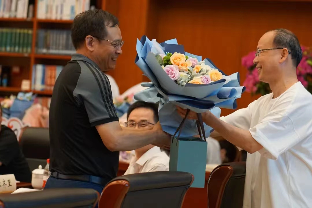 此外,现场还举行了献花和赠书仪式。由化学881班各宿舍代表向在场的教师代表、师兄弟代表、学院领导献上了芬芳的花束,以表感激之情。