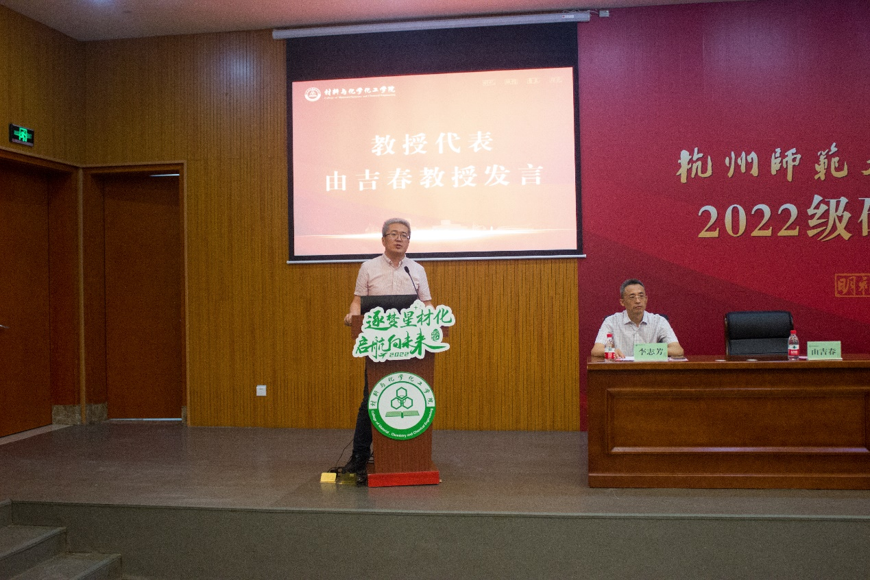 9月2日18:00,学院于学术交流中心A118报告厅举行2022级研究生新生开学第一课暨始业教育大会。学院院长章鹏飞,党委书记江齐里,副院长李志芳,党委副书记兼纪委书记管庆江,院长助理、化学系主任王民,学硕班班主任、教授代表由吉春,专硕班班主任、教授代表卢华,团委书记兼学工办主任张楚黛,团委副书记韩秉峻,辅导员孙丰娜,教学秘书苏丽等参加,共同欢迎学院213名新生的到来。
