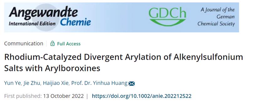 近日,亚洲色吧 邱化玉教授团队黄银华老师等在铑催化合成烯烃研究方面取得新进展,相关研究以“Rhodium-Catalyzed Divergent Arylation of Alkenylsulfonium Salts with Arylboroxines”为题发表在国际化学领域权威期刊AngewandteChemie International Edition(IF:16.823)上。