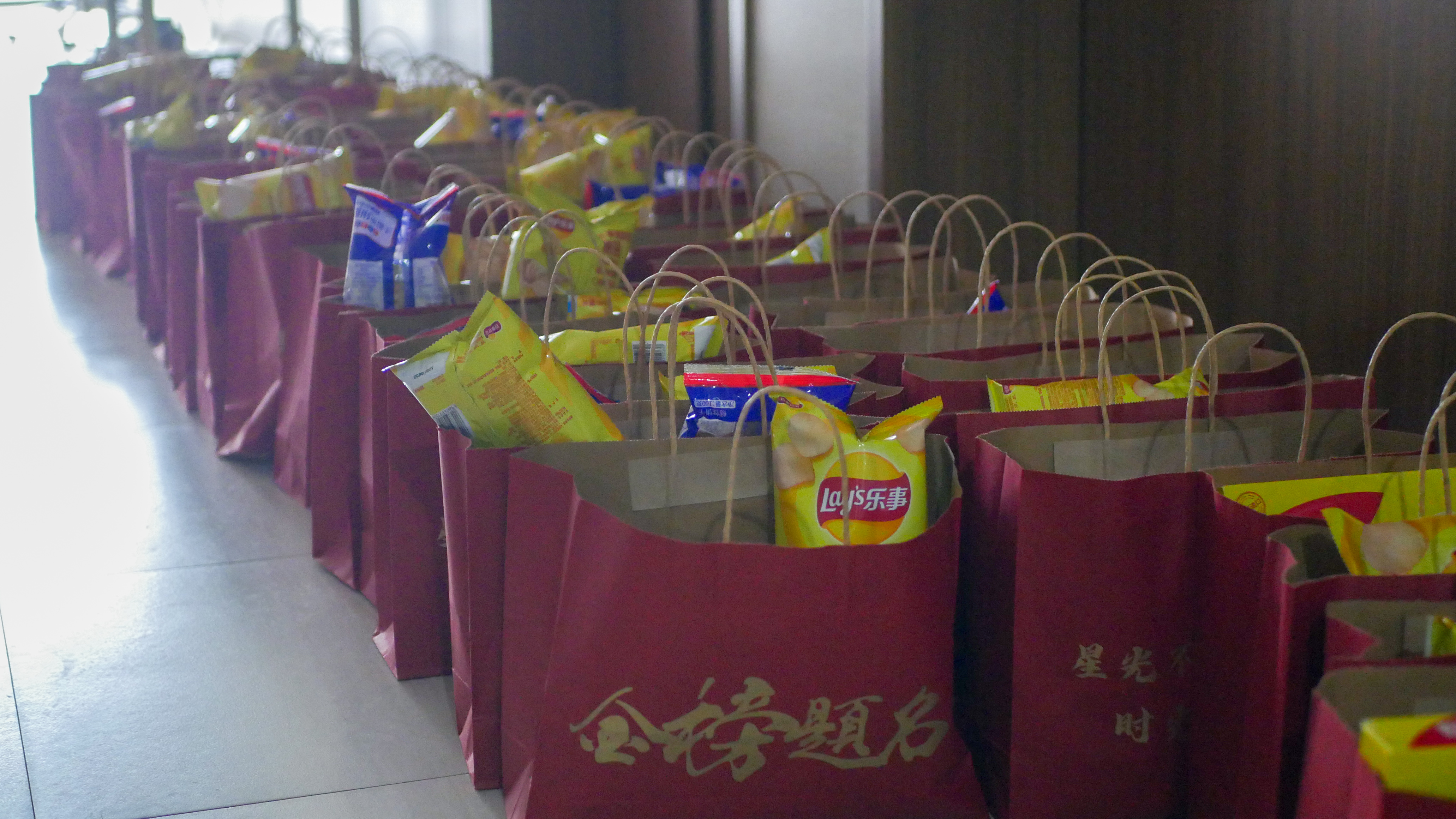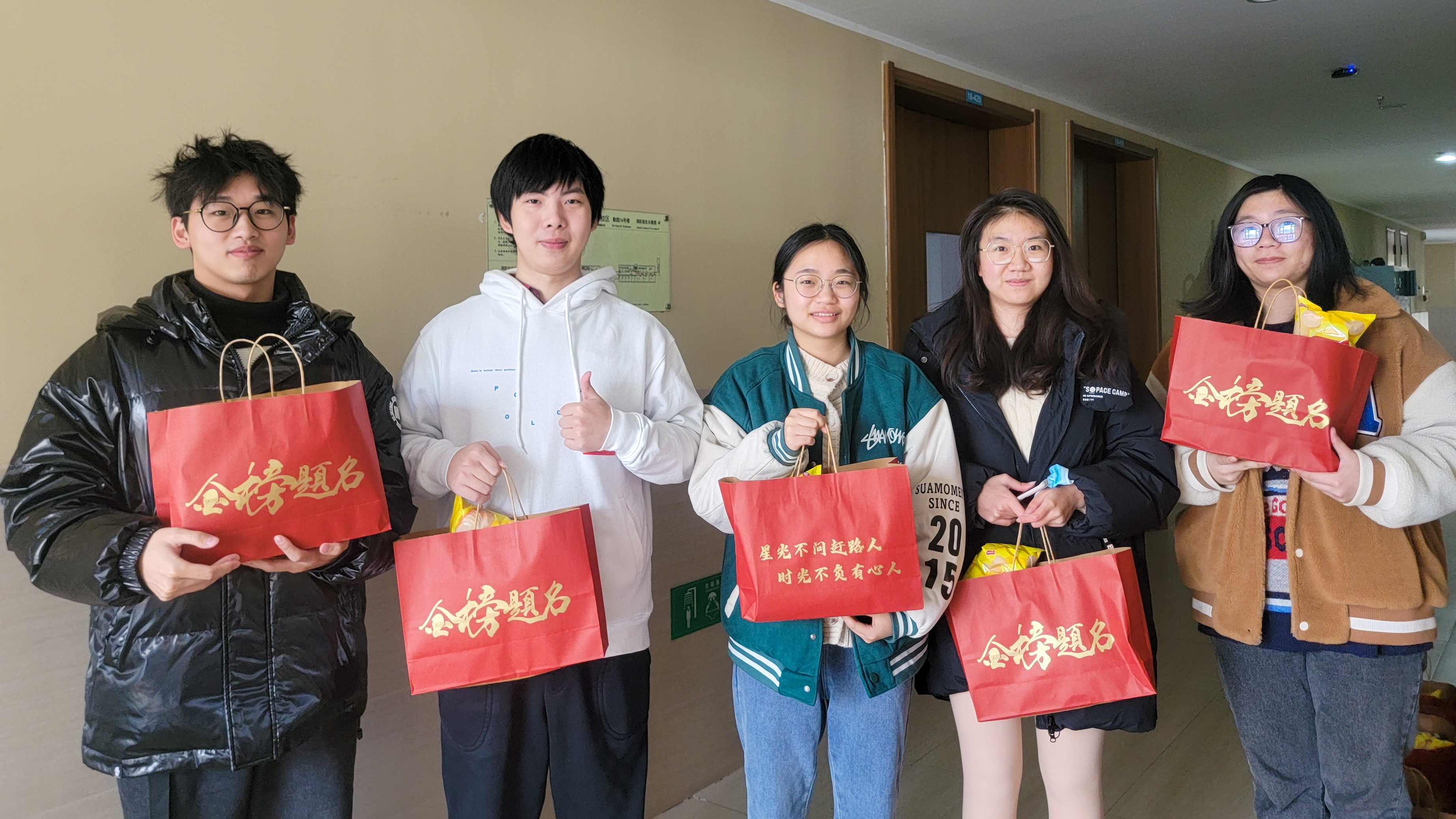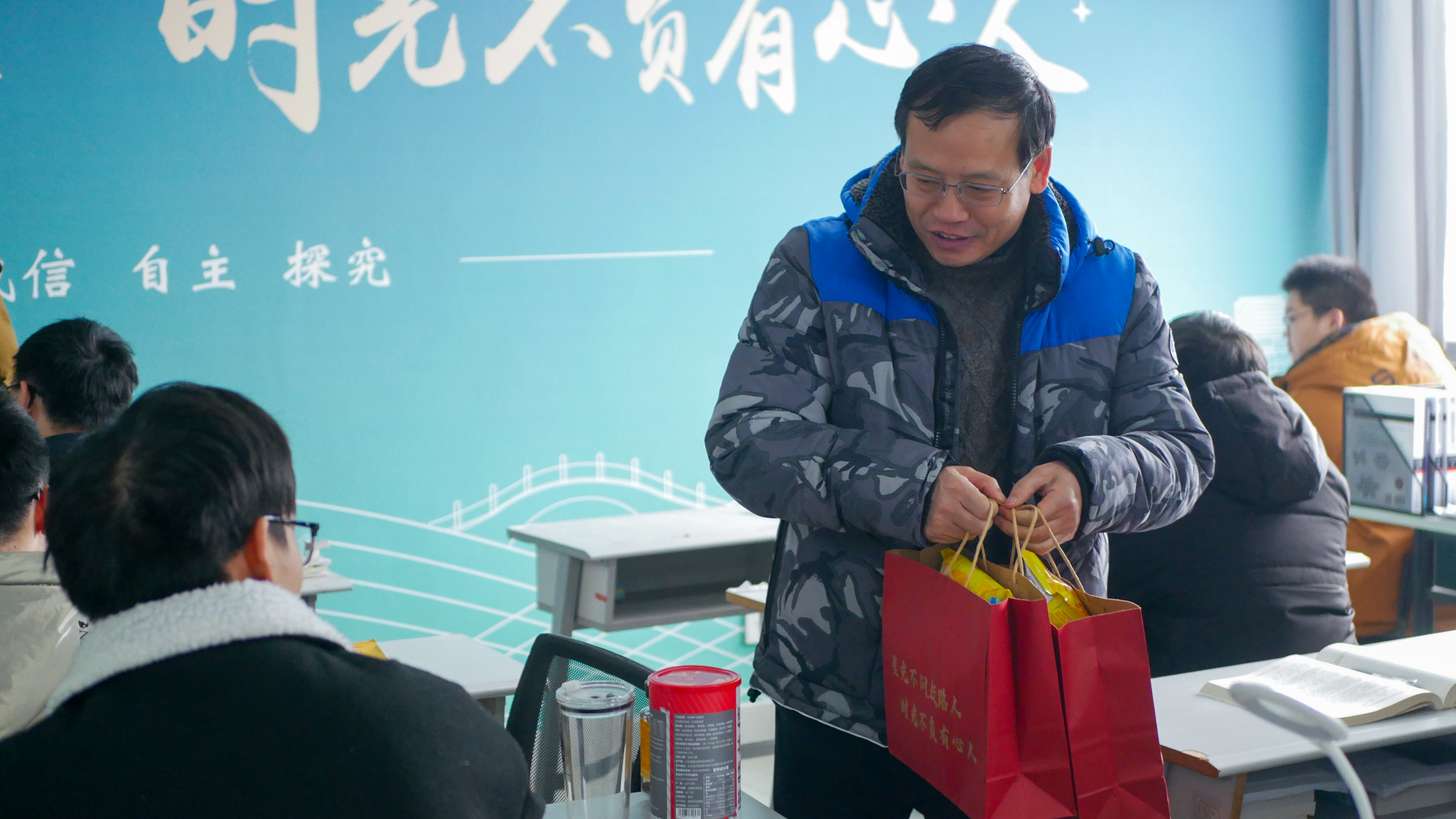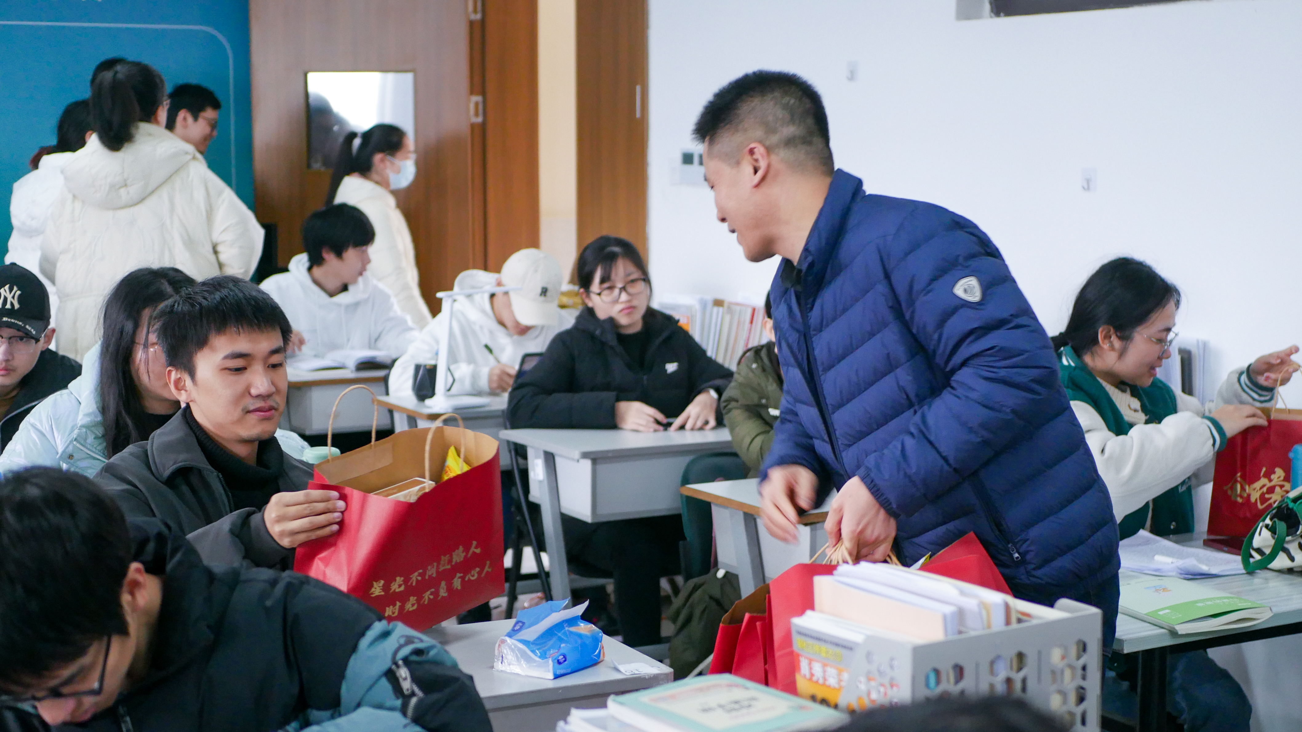 慰问现场,学院领导老师与备考学生就近期学习、生活情况进行亲切交流,并为他们送上精心准备的“考研加油包”。“星光不问赶路人,时光不负有心人”,礼包上的鎏金字样不仅记载着考研学子的努力与执着,还承载着亚洲色吧 对他们的祝福与期待。金榜题名,我们一“研”为定;勇毅前行,我们终将一战成“硕”。礼包中有代表“逢考必过”的文具福袋,有代表“考运旺旺”的零食,可谓是寓意满满。240余份暖心礼包,寄托着学院对考研学子的殷殷关切与点点期盼,希望这能为身处紧张备考氛围的他们“加油注能”。