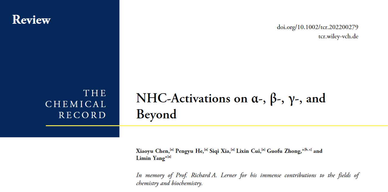 近日,亚洲色吧 杨丽敏副教授和钟国富教授受邀在化学领域知名期刊“The Chemical Record”(IF: 6.935)发表题为“NHC-Activations on α-, β-, γ-, and Beyond”的专题综述。该论文系统回顾了氮杂环卡宾活化α-、β-、γ-和远端位点的机制和研究进展。