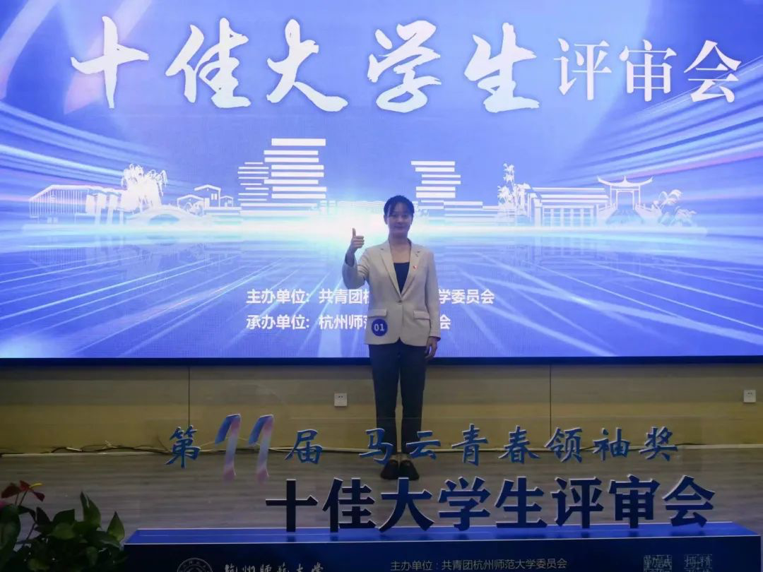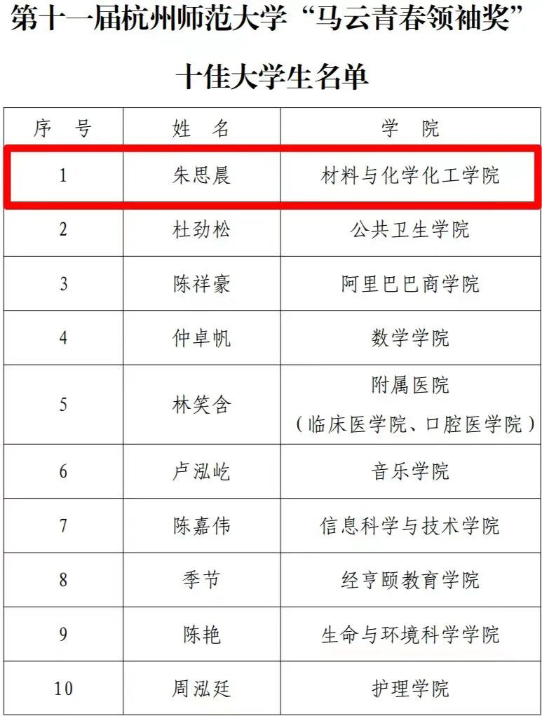 5月24日,18:00-20:30, 亚洲色吧 第十一届“马云青春领袖奖”十佳大学生答辩于仓前校区慎园8号楼102室举行,现场20位选手各展风采,亚洲色吧 2020级材料与化工专业研究生朱思晨同学(导师:曹君教授)专业水平突出、综合素质优异,现场答辩精彩,最终脱颖而出,成功获评此次荣誉称号。
