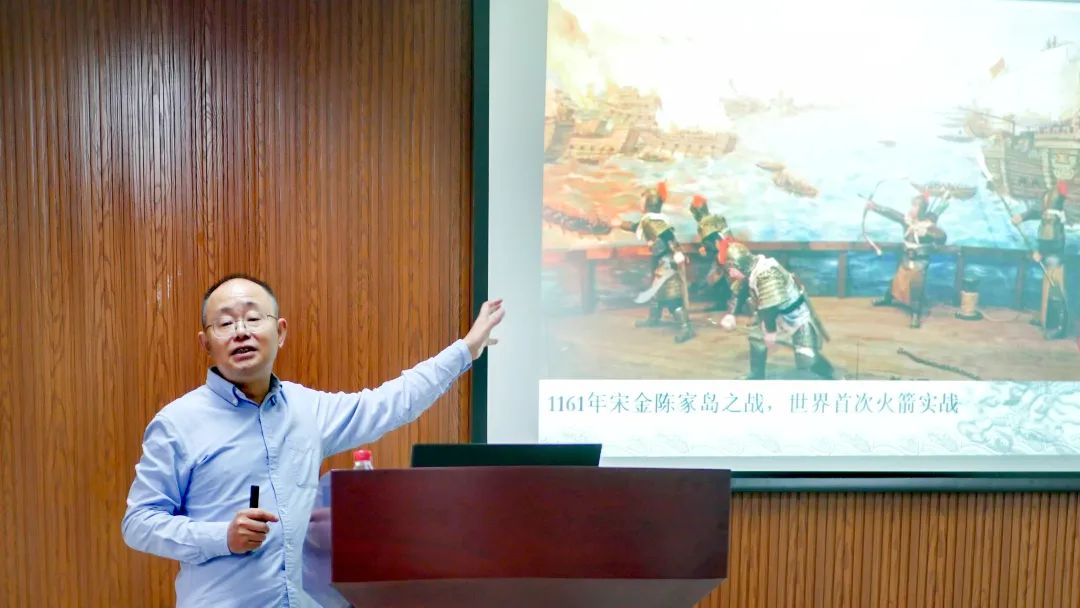 讲座伊始,姜青青老师通过引用陈寅恪、邓广铭和李约瑟对宋朝文化的评价,向同学们展示了宋朝的历史地位,以及对中国乃至世界的深远影响。他向同学们分享了他在大学时期通过阅读有关宋朝文化的小说,总结出的结论——“韵”是宋代的热词。他也由此向我们解释了“宋韵”之“韵”的由来。接着,他通过文学之美、书法之美、绘画之美、戏曲之美、建筑之美、风物之美、风俗之美、风范之美八个方面为同学们呈现了“宋韵”的精彩之处。他向同学们展示了苏轼的《东坡集》、黄庭坚的《松风阁》、林椿的《琵琶山鸟图》、李嵩的《月夜看潮图》等宋朝书画作品,并指出“宋韵”是两宋文化的精华和精彩。在座的同学们无一不感叹于“宋韵”独一无二的风采——高雅而低调、灵动而内敛,真切地感受到了“宋韵”是当之无愧的宋文化高峰、中国传统文化瑰宝。最后,姜青青老师向我们强调了“宋韵”创造的历史价值,推动中国经济重心向东南转移,加速中国对外贸易由西向东转向,推动世界史开启“大航海时代”。