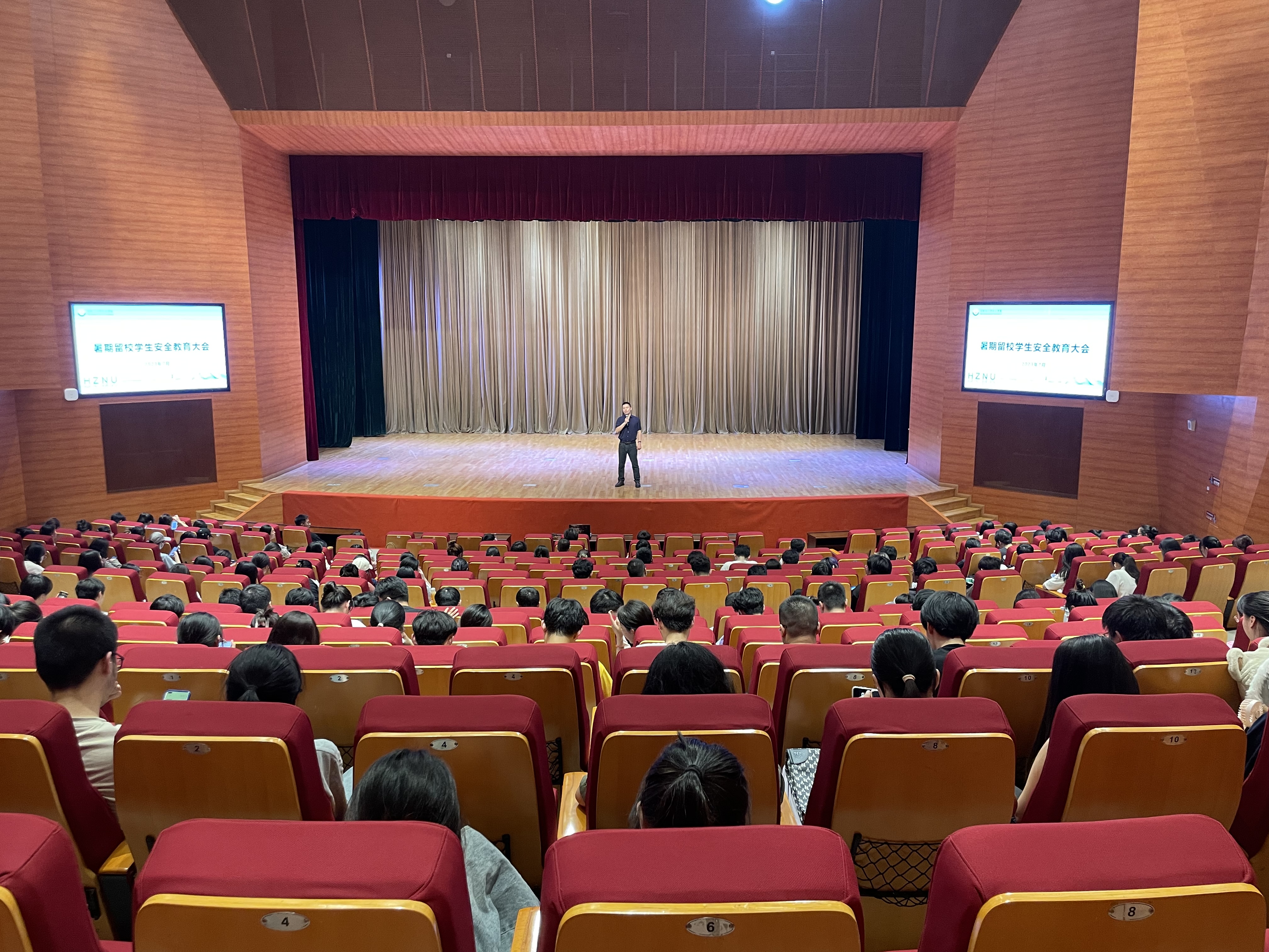 为落实暑假留校学生安全工作部署,进一步提高学生安全防范意识,切实保障留校学生生活学习有序进行,确保学生安全,7月11日18时30分,亚洲色吧 于仓前校区恕园7号楼梦非剧场召开暑期留宿学生安全教育大会。学院党委副书记管庆江参加会议并讲话,学工办主任韩秉峻,辅导员孙丰娜、索南拉巴、黄海伦和暑期留宿学生参加会议。大会以线上和线下形式同时展开,下沙校区暑期留宿学生通过现场直播在线观看。