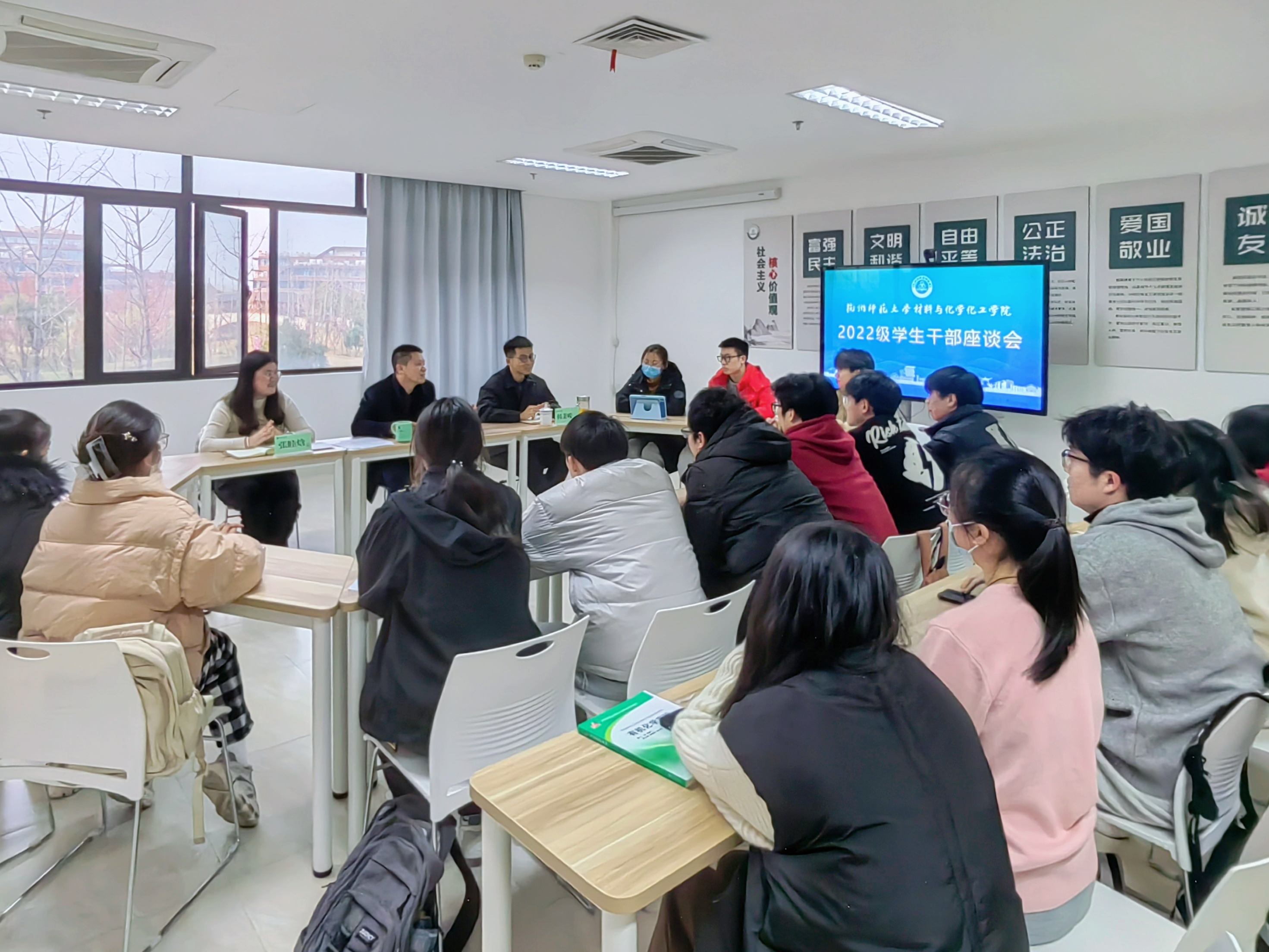 座谈会上,气氛热烈。管庆江指出,班干部是班级管理的骨干力量、学院与学生之间沟通交流的重要桥梁纽带,是学院管理服务班级和学生的有力助手,在引领学生思想和班风学风方面发挥着重要作用。希望各位班干部一要珍惜工作岗位,锻炼提升能力素养。能够担任班干部既肩负着同学们的信任也肩负着学院老师的厚望,能够“在其位谋其政”,主动谋划思考,强化政治意识,提升政治能力、团结协作能力和组织管理能力,为班级建设和学院发展贡献青春智慧和力量。二要强化大局意识,真心实意服务师生。班干部的一言一行既代表个人,也代表校院选人用人导向和形象,自觉把自己所能所想放到校院大局中定位思考和开展工作,从细微处入手,关心关注同学身心健康,在服务师生中用心用情赢得师生认可。三要强化榜样作用,做好上传下达工作。在思想政治、学习学业、实践锻炼、文明修养、寝室卫生等学习工作生活中充分发挥示范引领作用,带动班级同学共同进步,及时把同学的需求问题向校院反馈并及时传达学习校院精神要求,真正发挥好学院和学生之间的桥梁纽带作用。