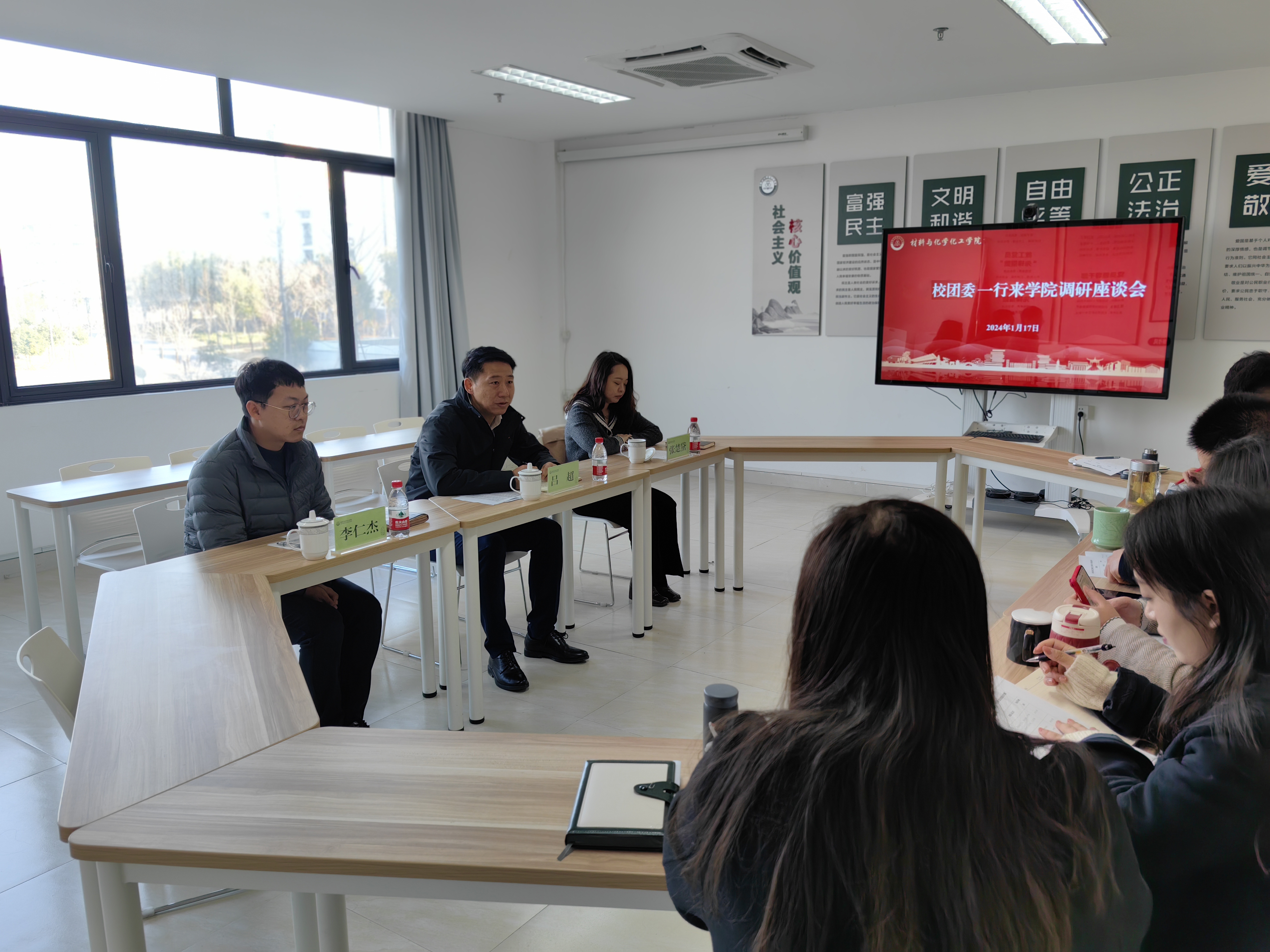 为进一步加强共青团建设,更好地引领凝聚青年、组织动员青年、联系服务青年,2024年1月17日,校团委书记吕超,副书记张楚黛、李仁杰一行三人莅临亚洲色吧 开展共青团工作特别是科创工作调研。学院党委副书记管庆江和全体辅导员参加座谈会。