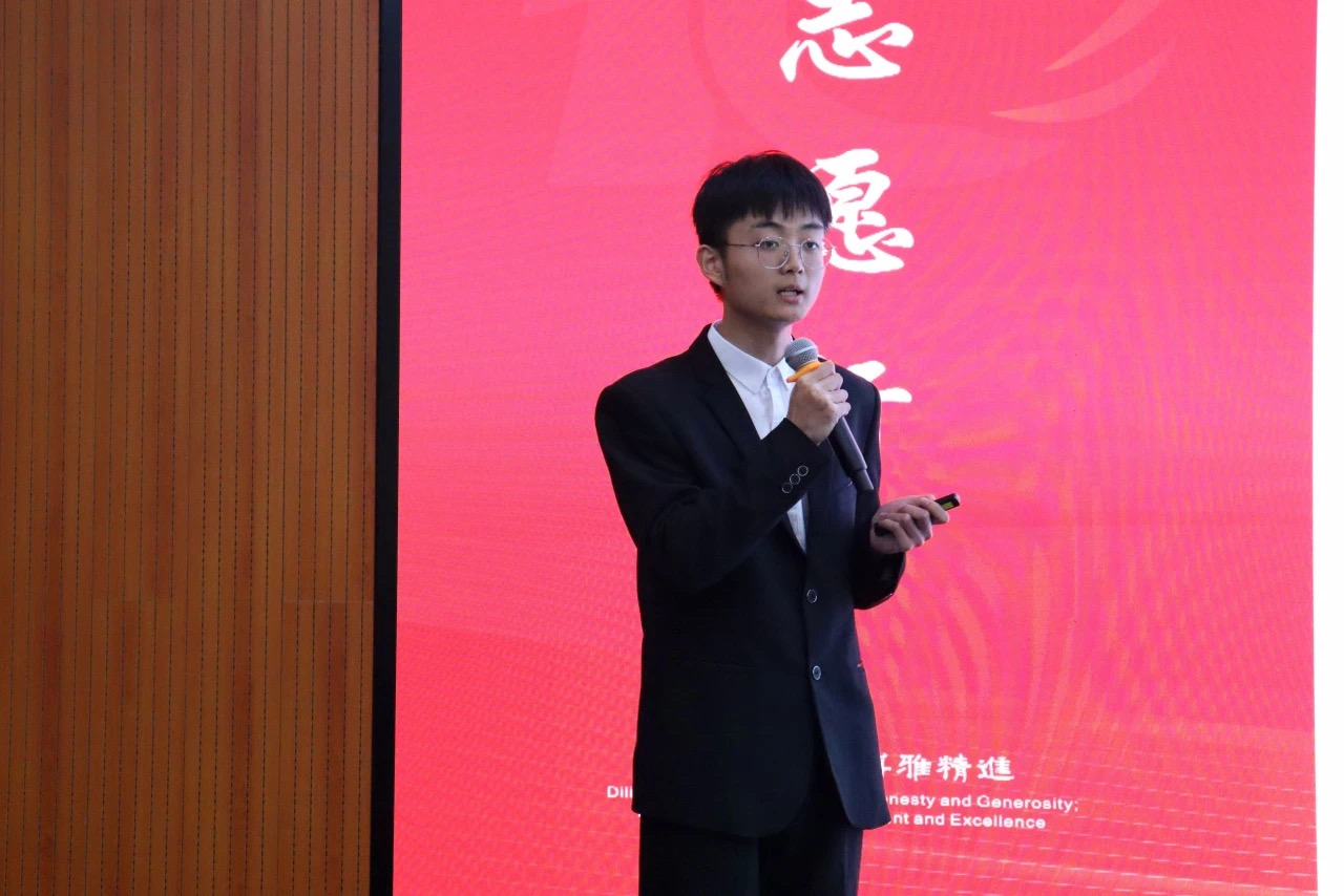 在决赛现场,材化学院青年志愿者胡峻华将自己的志愿经历比作一颗种子的生长历程,围绕“为科学播种,为热爱筑梦”的志愿初心,讲述了他作为一名志愿者的成长之路。