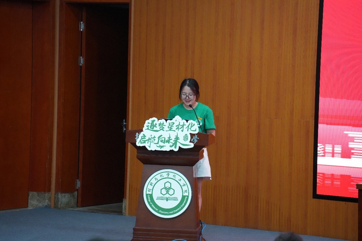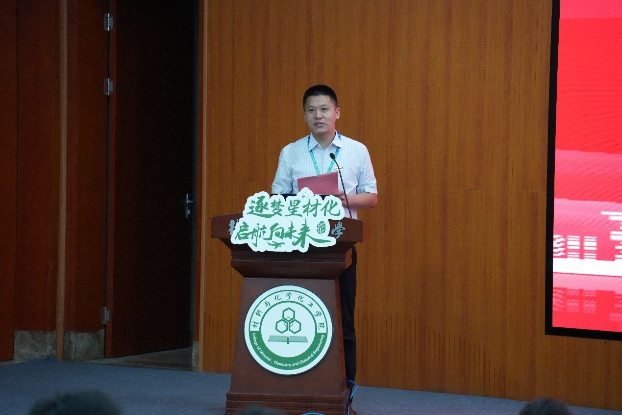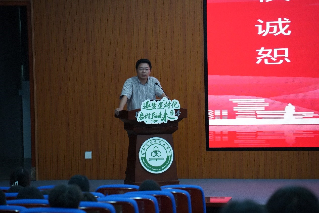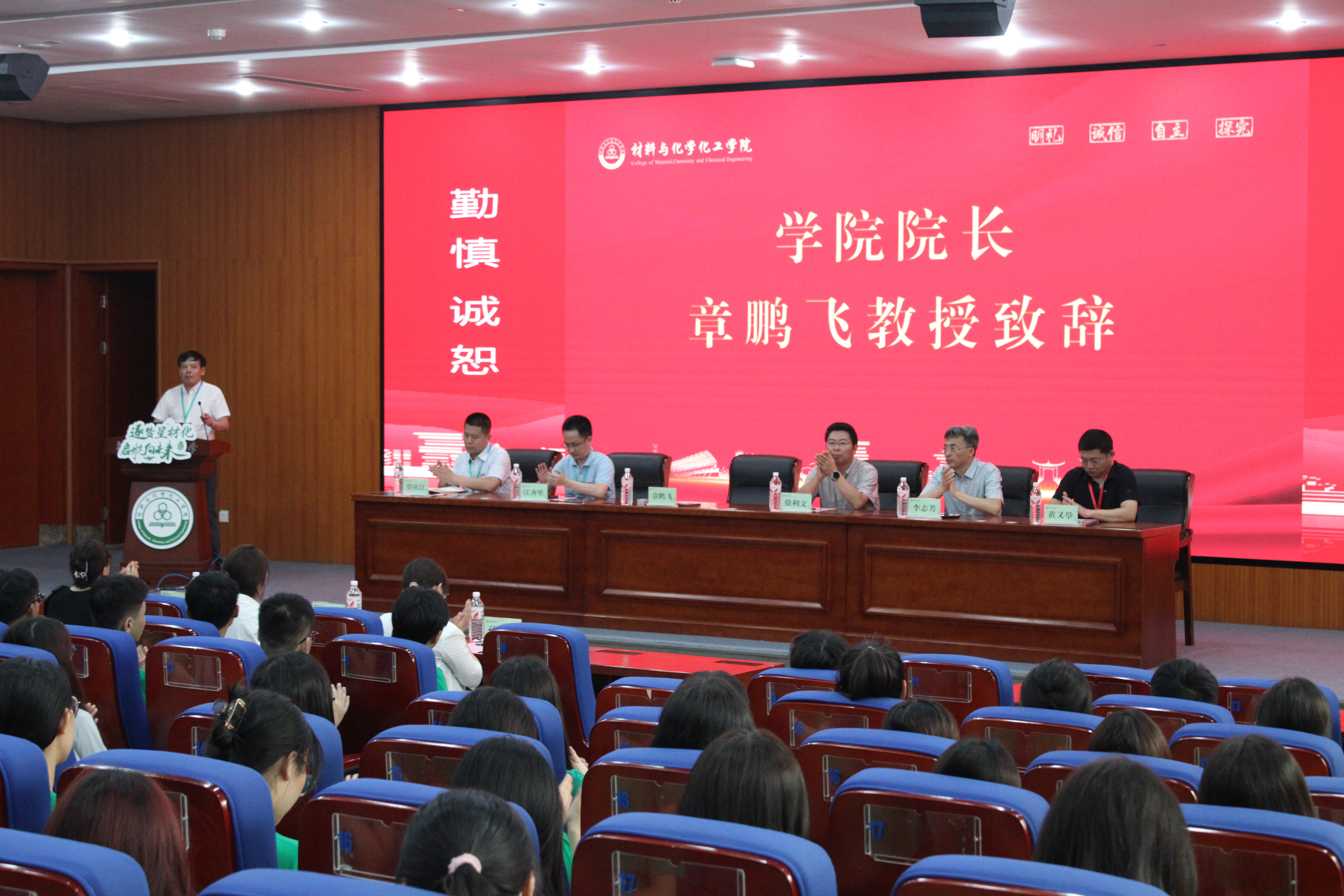 章鹏飞发表了题为“心怀‘国之大者’,勇于探索创新”的讲话,代表学院向各位新同学的到来表示热烈的欢迎,向鼎力支持和帮助同学读研的家人表示最诚挚的谢意。章院长通过对学院的悠久历史、师资力量、科研水平以及科研成果的简明介绍,希望同学们能够在材化学院浓厚的学术氛围下努力拼搏,探索创新。他提出了三点希望和要求:第一,心怀“国之大者”,勇担时代重任。“士不可以不弘毅,任重而道远。”同学们要心怀“国之大者”,让青春在以中国式现代化全面推进强国建设、民族复兴伟业中绽放光彩。第二,思考探索研途,创新引领未来。“学而不思则罔,思而不学则殆。”创新始终是一个国家、一个民族发展的重要力量,是百年变局中的“关键变量”,也是研究生学习的最重要驱动力。第三、坚持守正创新,修身立德成长。既要学知识、学本事,又要学做人、学处世,坚守学术底线,养成自律习惯,学会时间管理和团队合作,共同攻克科研难题,勇攀科技高峰。