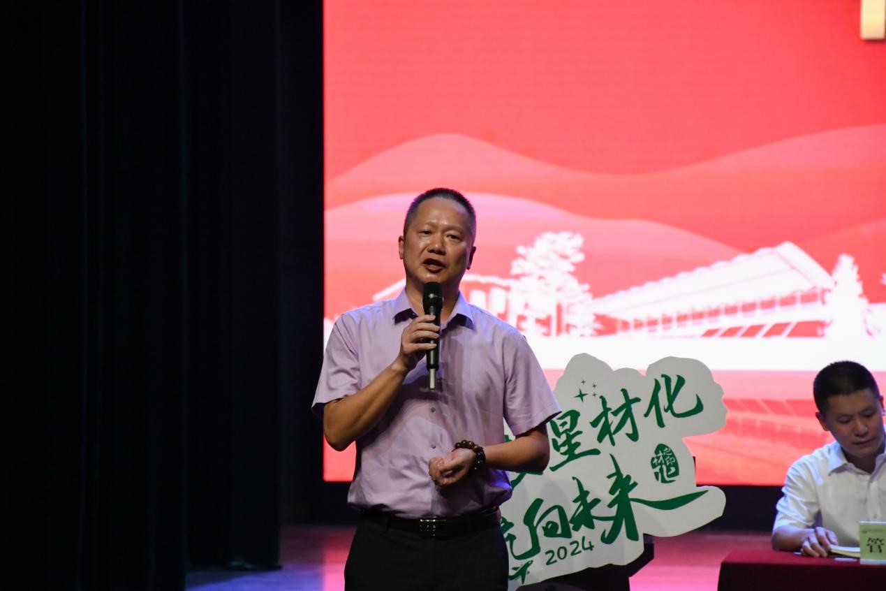 新生班主任代表徐伟明教授以一则老鹰与小鸡的寓言故事切入,称自己是那名把大家"推下悬崖"的人,激励新生“雏鹰们”认识到自身潜力,发掘内在才能,扇动翅膀,展翅飞翔。鼓励大家培养独立性、积极性和进取心。同时,强调了军训作为入学第一课的重要性。并且要求同学们在未来四年大学时光中,应主动学习,加快实现自我成长。最后,呼吁大家珍惜当下,把握机会,努力成为在杭师大自由翱翔的雄鹰。