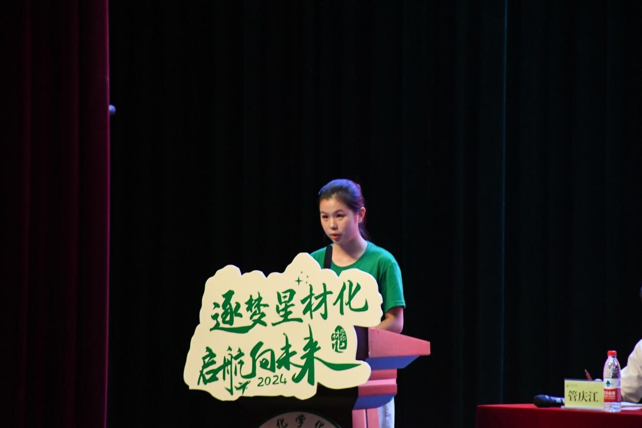 在校生代表、学生会执行主席陈丹发言,她热烈欢迎新生,并基于经历给出四点建议:认识自我,规划未来;克服懒惰,持续学习;参与实践,促进成长;坚持不懈,勇于挑战。鼓励新生珍惜时光,勇敢探索。